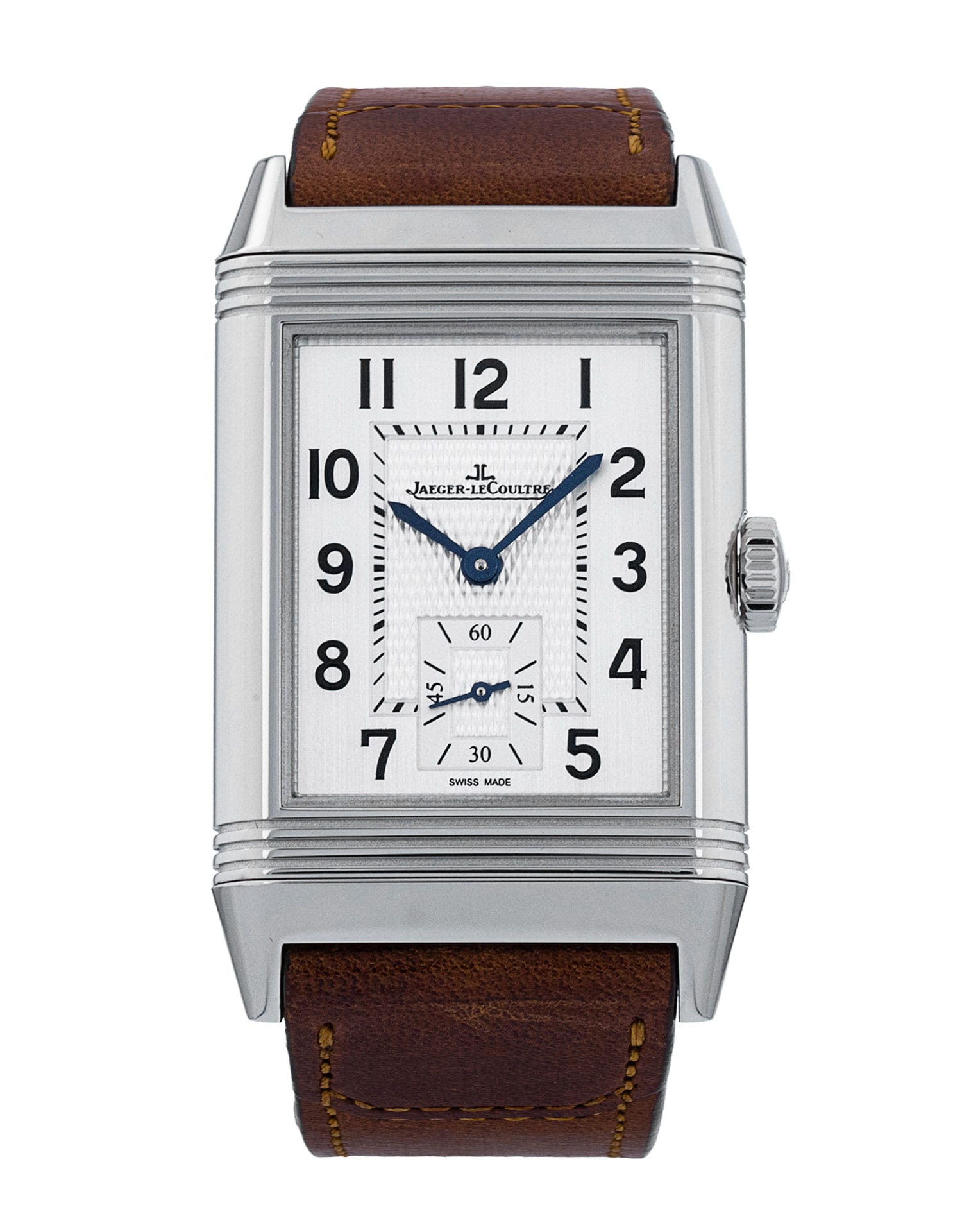 This Jaeger-LeCoultre Reverso Classic Monoface 3858522 has a silver arabic dial and a leather strap. This Jaeger-LeCoultre has undergone a thorough inspection of accuracy, functionality and condition at our Jaeger-LeCoultre certified service centre to determine the level of reconditioning required to meet our strict standards. It has also been checked against our records to ensure authenticity. Our watches have a 24-month warranty for your peace of mind, in conjunction with any remaining manufacturer’s warranty from new or from service.