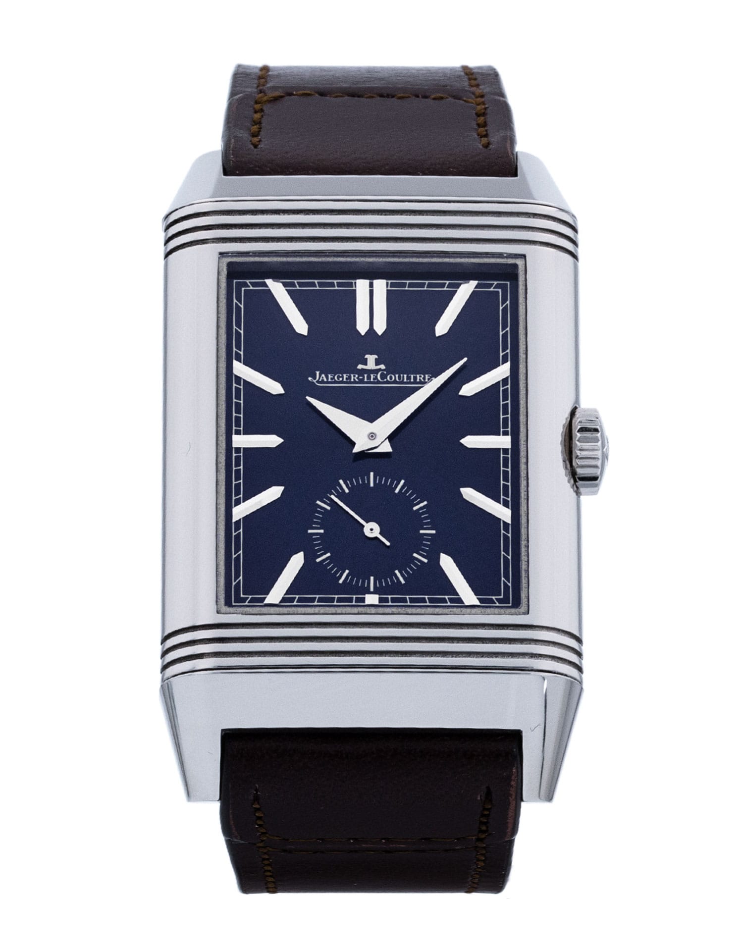 This Jaeger-LeCoultre Reverso Tribute Duoface 3988482 has a blue baton dial and a leather strap. This Jaeger-LeCoultre has undergone a thorough inspection of accuracy, functionality and condition at our Jaeger-LeCoultre certified service centre to determine the level of reconditioning required to meet our strict standards. It has also been checked against our records to ensure authenticity. Our watches have a 24-month warranty for your peace of mind, in conjunction with any remaining manufacturer’s warranty from new or from service.