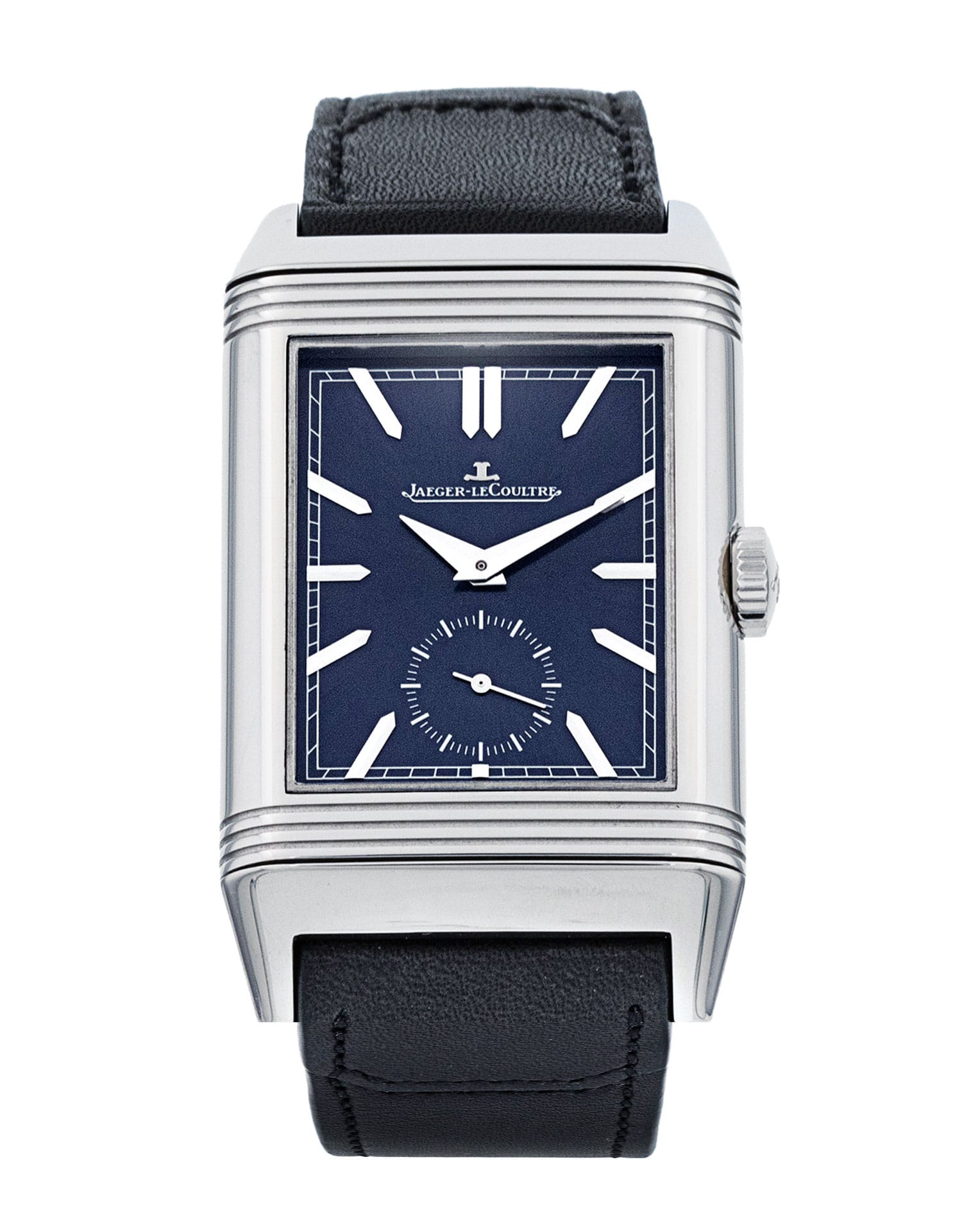 This Jaeger-LeCoultre Reverso Tribute Duoface 3988482 has a blue baton dial and a leather strap. This Jaeger-LeCoultre has undergone a thorough inspection of accuracy, functionality and condition at our Jaeger-LeCoultre certified service centre to determine the level of reconditioning required to meet our strict standards. It has also been checked against our records to ensure authenticity. Our watches have a 24-month warranty for your peace of mind, in conjunction with any remaining manufacturer’s warranty from new or from service.