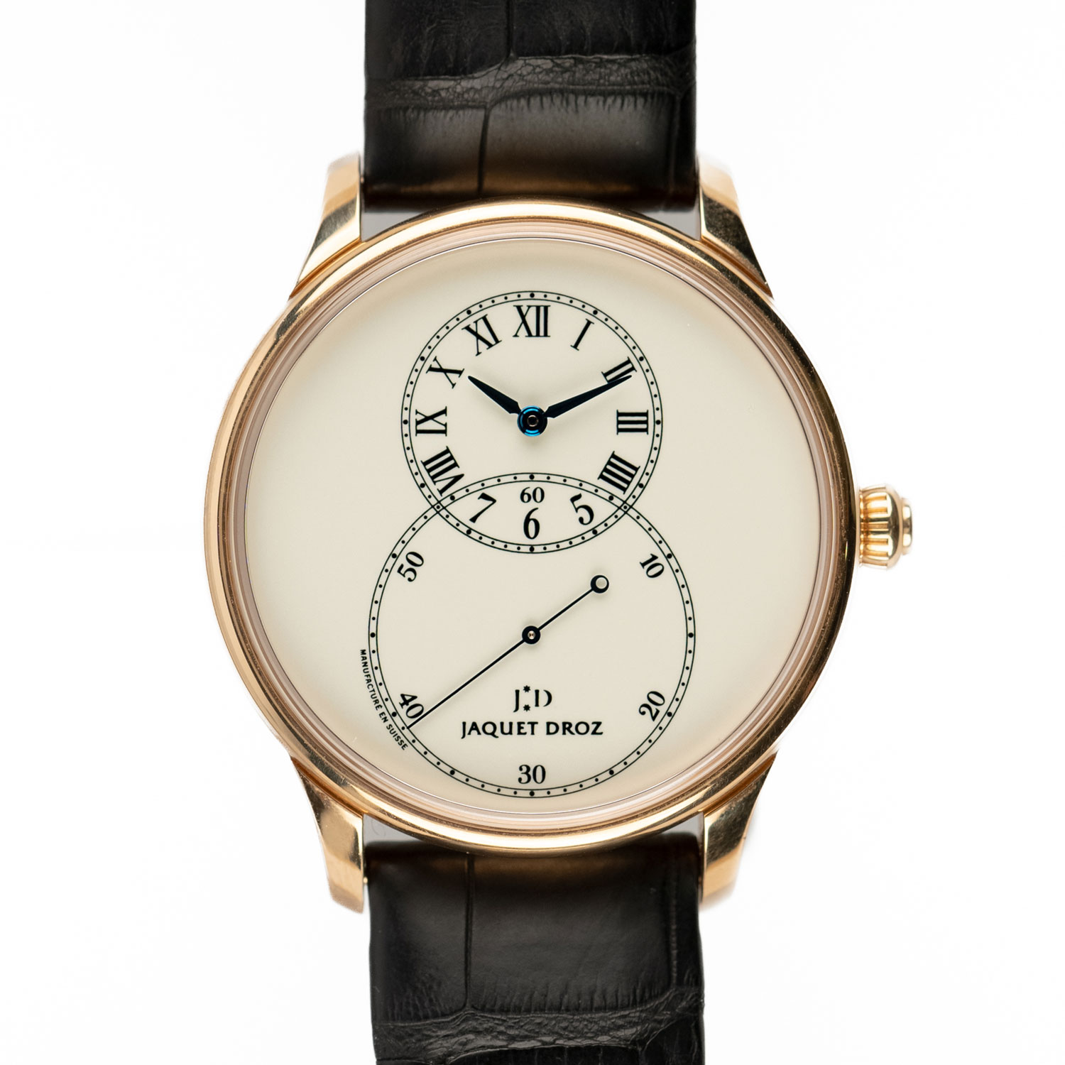 One of the oldest watchmakers in the world—only Blancpain has been around longer, at just three years more—Jaquet Droz has produced some remarkable creations. In its early years, the watchmaker extended its craft outside of horology when founder Pierre Jaquet-Droz created three automatas—a kind of mechanical puppet—which dazzled audiences at the time. Aside from the animatronics, Jaquet Droz has created this Grande Seconde Email Ivoire. Inside, this watch is powered by the Frederic Piguet calibre 1150—a world-class movement also used by both Blancpain and Breguet. Flaunting a minimalistic aesthetic with a cream enamel dial created using the painstaking Grand Feu process—baking fine enamel powder onto a copper blank at almost one thousand degrees Celsius—this is a process at which Jaquet Droz are industry leaders. The watch also features a large sub-seconds dial, as well as hours and minutes dial. This is a unique piece from an incredibly charming watchmaker.