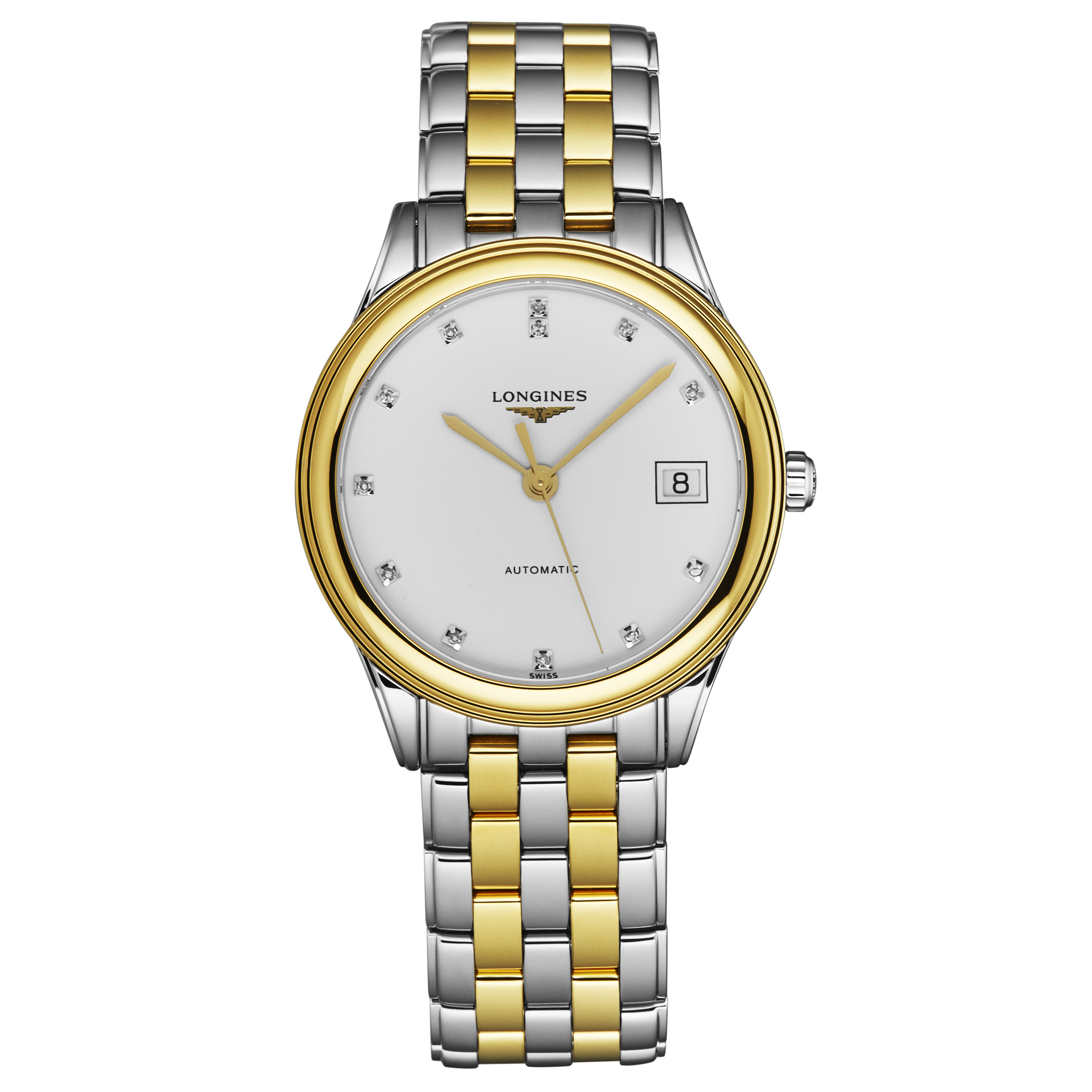 This Longines Flagship L4.774.3.27.7 has a white diamond dial and a bracelet strap. This Longines has undergone a thorough inspection of accuracy, functionality and condition at our Longines certified service centre to determine the level of reconditioning required to meet our strict standards. It has also been checked against our records to ensure authenticity. All our watches have a 24-month warranty for your peace of mind.