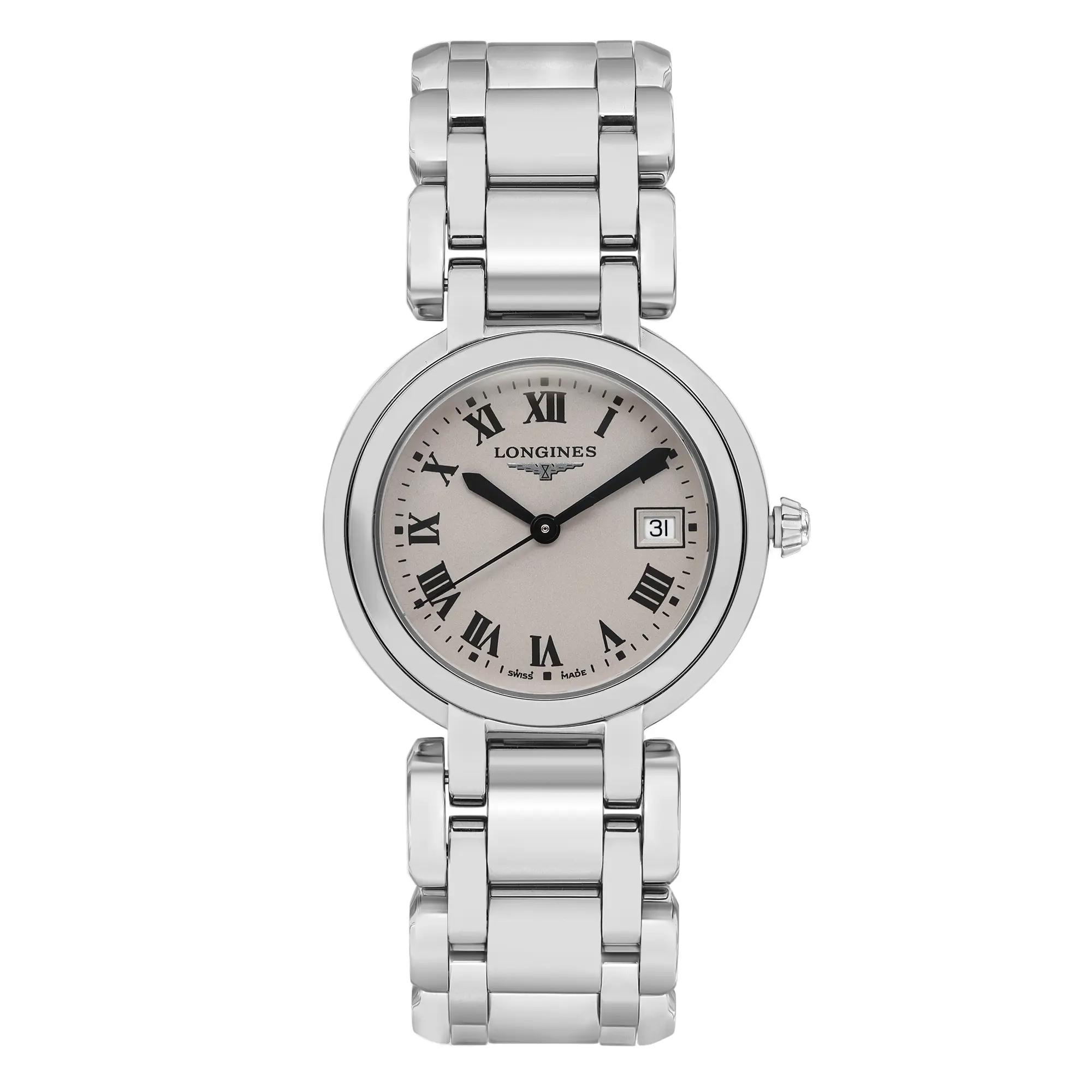 This Longines PrimaLuna L8.112.4.71.6 has a silver roman numeral dial and a bracelet strap. This Longines has undergone a thorough inspection of accuracy, functionality and condition at our Longines certified service centre to determine the level of reconditioning required to meet our strict standards. It has also been checked against our records to ensure authenticity. All our watches have a 24-month warranty for your peace of mind.