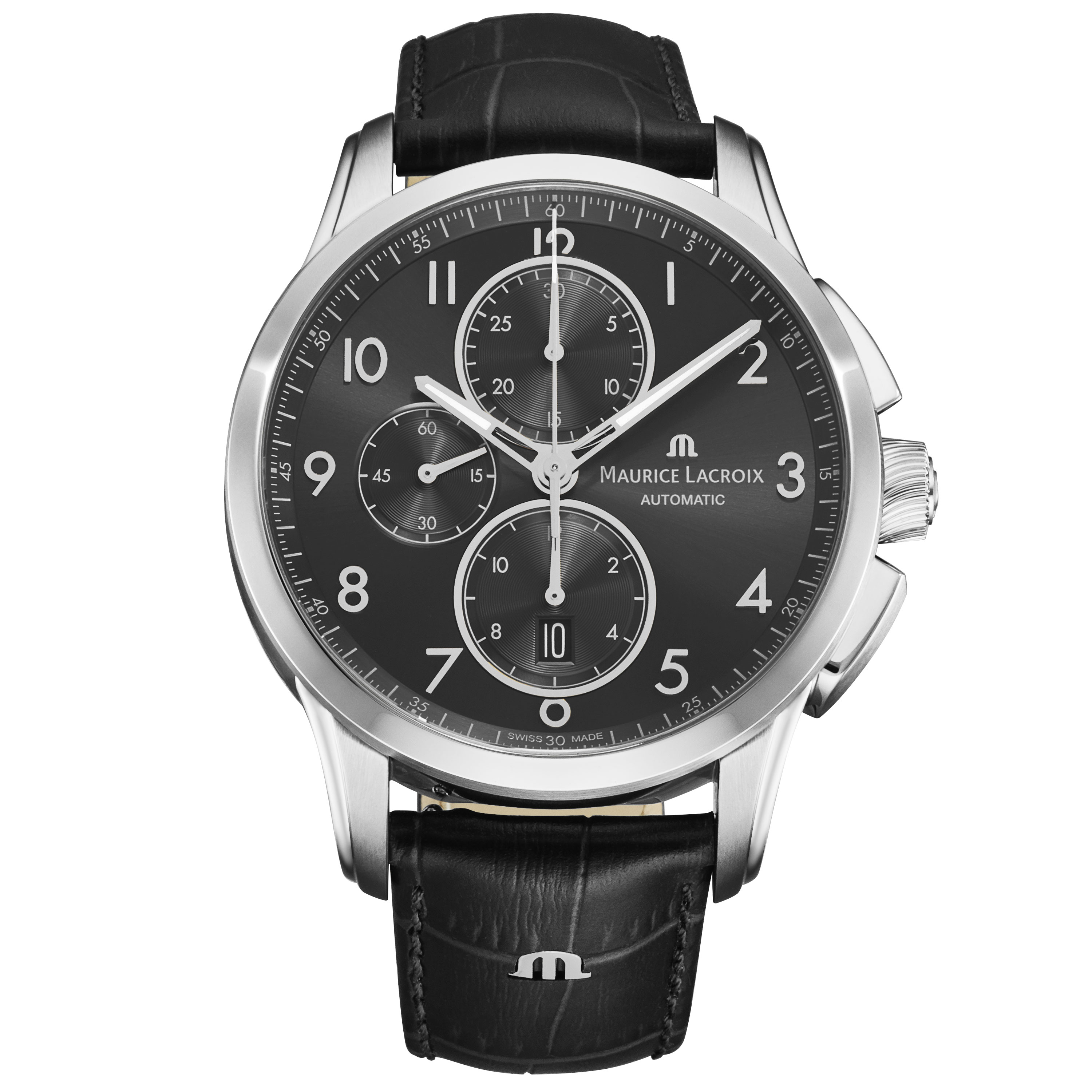 This Maurice Lacroix Pontos Chronograph PT6388-SS001-320-2 has a black arabic dial and a leather strap. This Maurice Lacroix has undergone a thorough inspection of water resistance, accuracy, functionality and condition to determine the level of reconditioning required to meet our strict standards. It has also been referenced against technical documents and manufacturer records where available to ensure authenticity and a clean history. All our watches have a 24-month warranty for your peace of mind.