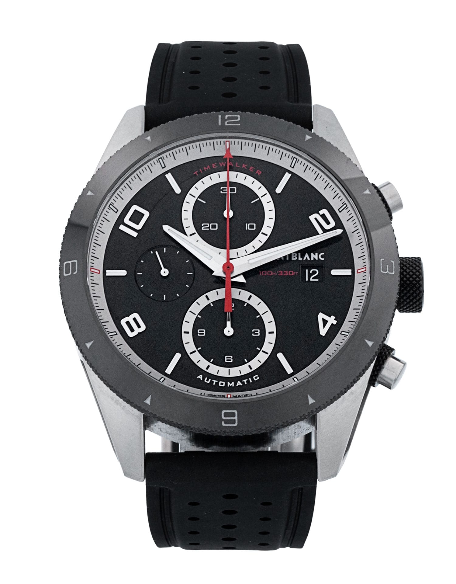 This Montblanc TimeWalker 116096 has a black arabic dial and a rubber strap. This Montblanc has undergone a thorough inspection of water resistance, accuracy, functionality and condition to determine the level of reconditioning required to meet our strict standards. It has also been referenced against technical documents and manufacturer records where available to ensure authenticity and a clean history. Our watches have a 24-month warranty for your peace of mind, in conjunction with any remaining manufacturer’s warranty from new or from service.