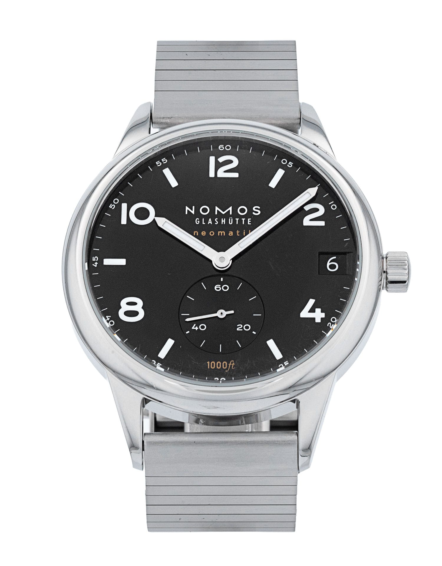 This Nomos Glashutte Club 781 has a black arabic dial and a bracelet strap. This Nomos Glashutte has undergone a thorough inspection of water resistance, accuracy, functionality and condition to determine the level of reconditioning required to meet our strict standards. It has also been referenced against technical documents and manufacturer records where available to ensure authenticity and a clean history. All our watches have a 24-month warranty for your peace of mind.