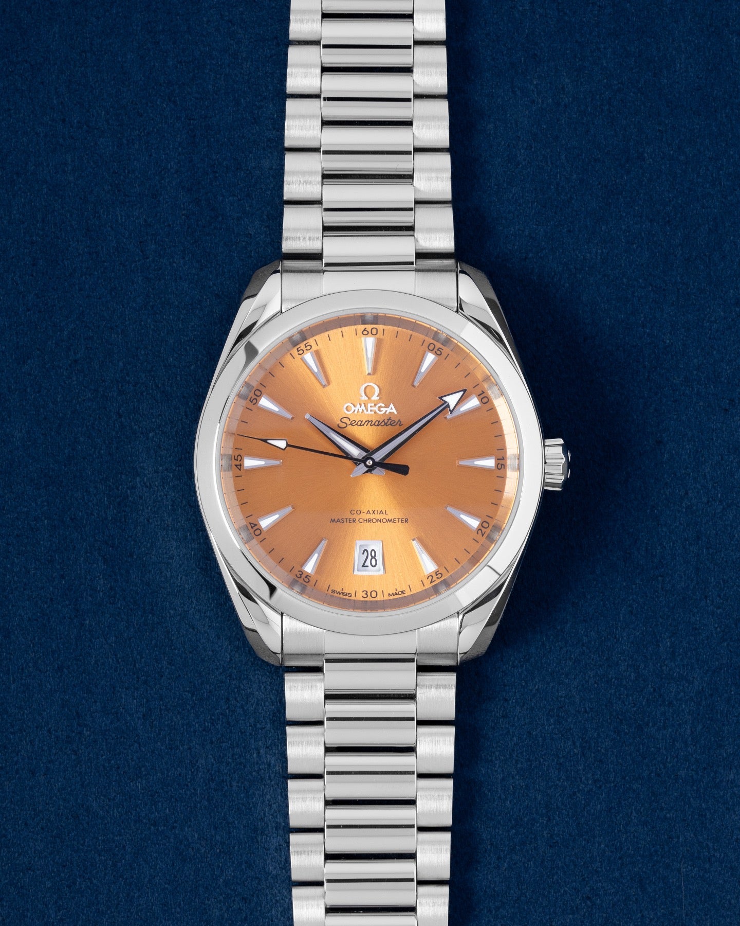 This Omega Aqua Terra 150m Gents 220.10.38.20.12.001 has a bronze dial and a bracelet strap. This Omega has undergone a thorough inspection of accuracy, functionality and condition at our Omega certified service centre to determine the level of reconditioning required to meet our strict standards. It has also been checked against our records to ensure authenticity. All our watches have a 24-month warranty for your peace of mind.