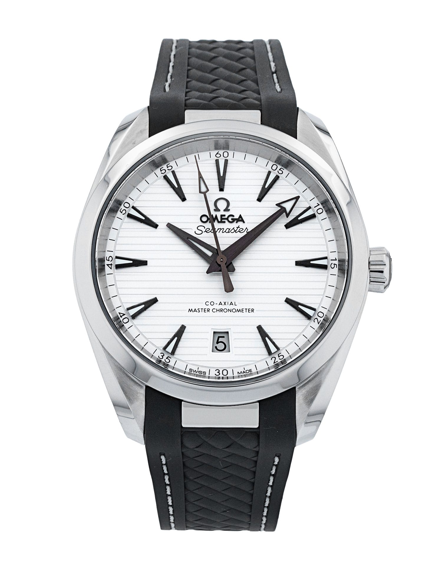 This Omega Aqua Terra 150m Gents 220.12.38.20.02.001 has a silver baton dial and a rubber strap. This Omega has undergone a thorough inspection of accuracy, functionality and condition at our Omega certified service centre to determine the level of reconditioning required to meet our strict standards. It has also been checked against our records to ensure authenticity. All our watches have a 24-month warranty for your peace of mind.