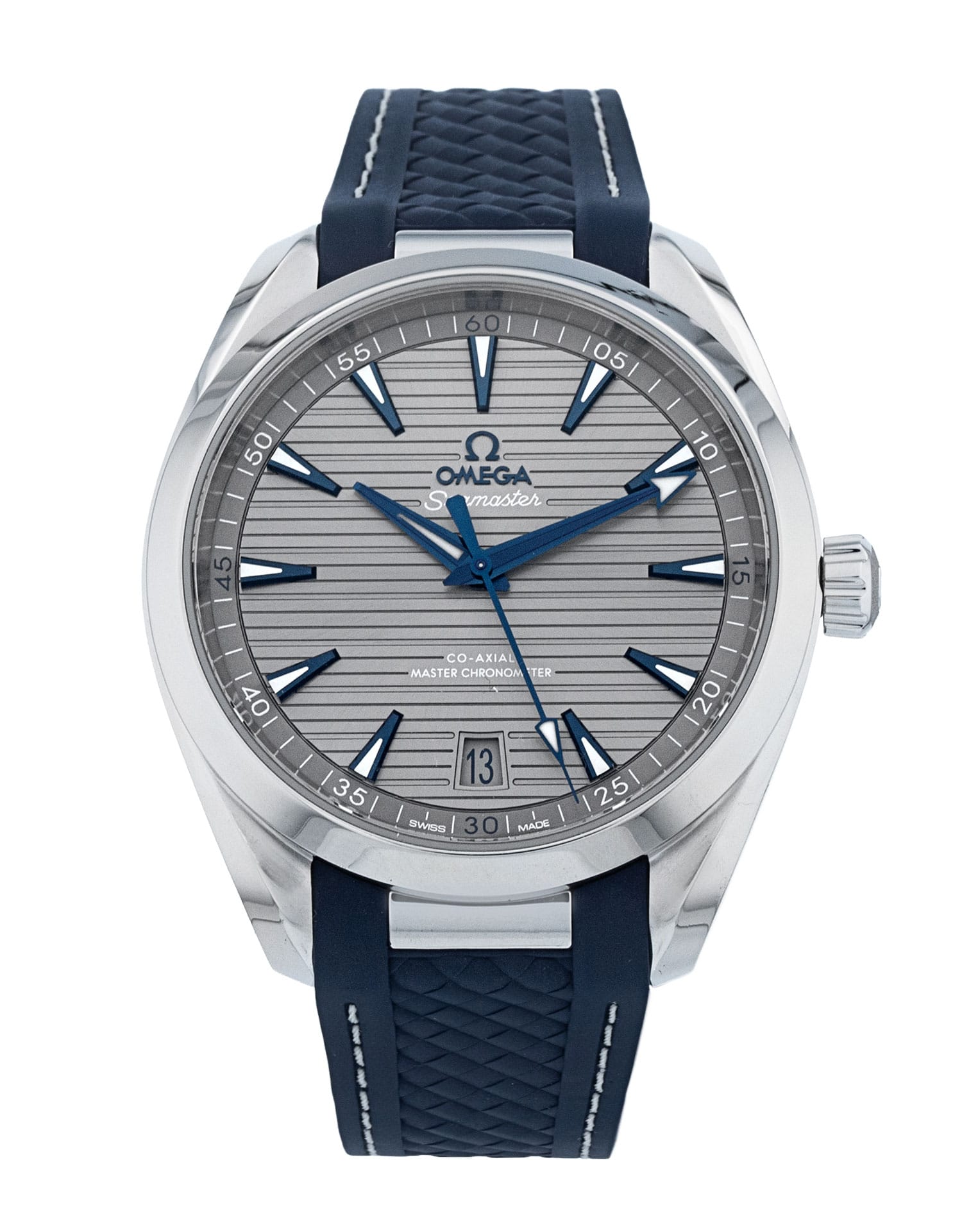 This Omega Aqua Terra 150m Gents 220.12.41.21.06.001 has a grey baton dial and a rubber strap. This Omega has undergone a thorough inspection of accuracy, functionality and condition at our Omega certified service centre to determine the level of reconditioning required to meet our strict standards. It has also been checked against our records to ensure authenticity. All our watches have a 24-month warranty for your peace of mind.