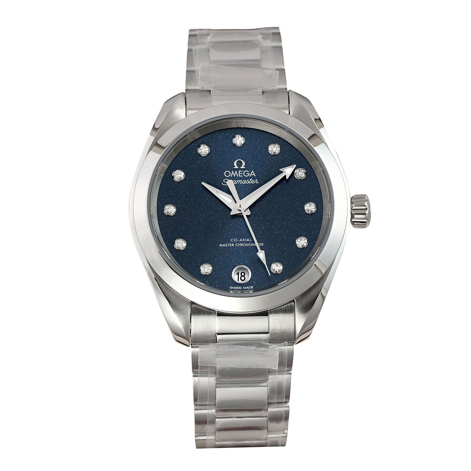 This Omega Aqua Terra 150m Ladies 220.10.34.20.53.001 has a blue diamond dial and a bracelet strap. This Omega has undergone a thorough inspection of accuracy, functionality and condition at our Omega certified service centre to determine the level of reconditioning required to meet our strict standards. It has also been checked against our records to ensure authenticity. Our watches have a 24-month warranty for your peace of mind, in conjunction with any remaining manufacturer’s warranty from new or from service.