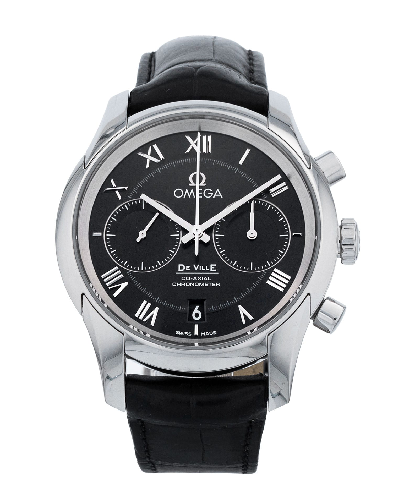 This Omega De Ville Co-Axial 431.13.42.51.01.001 has a black roman numeral dial and a leather strap. This Omega has undergone a thorough inspection of accuracy, functionality and condition at our Omega certified service centre to determine the level of reconditioning required to meet our strict standards. It has also been checked against our records to ensure authenticity. All our watches have a 24-month warranty for your peace of mind.