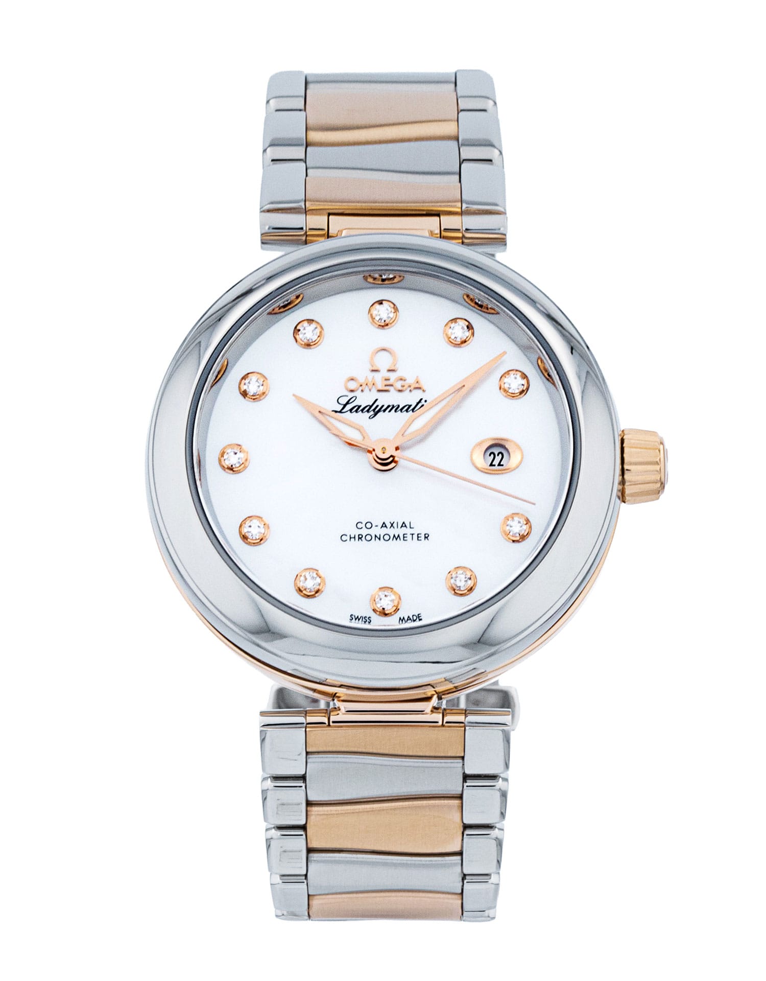 This Omega De Ville Ladymatic 425.20.34.20.55.004 has a mother of pearl white - diamond dial and a bracelet strap. This Omega has undergone a thorough inspection of accuracy, functionality and condition at our Omega certified service centre to determine the level of reconditioning required to meet our strict standards. It has also been checked against our records to ensure authenticity. All our watches have a 24-month warranty for your peace of mind.