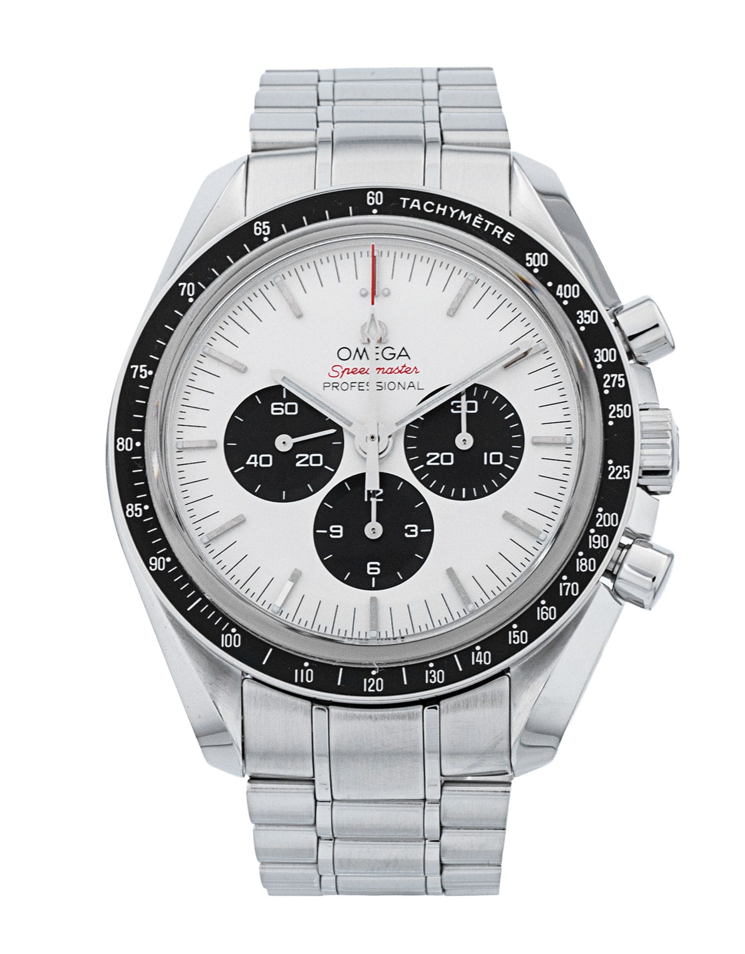 This Omega Olympic Speedmaster 522.30.42.30.04.001 has a silver dial and a bracelet strap. This Omega has undergone a thorough inspection of accuracy, functionality and condition at our Omega certified service centre to determine the level of reconditioning required to meet our strict standards. It has also been checked against our records to ensure authenticity. All our watches have a 24-month warranty for your peace of mind.