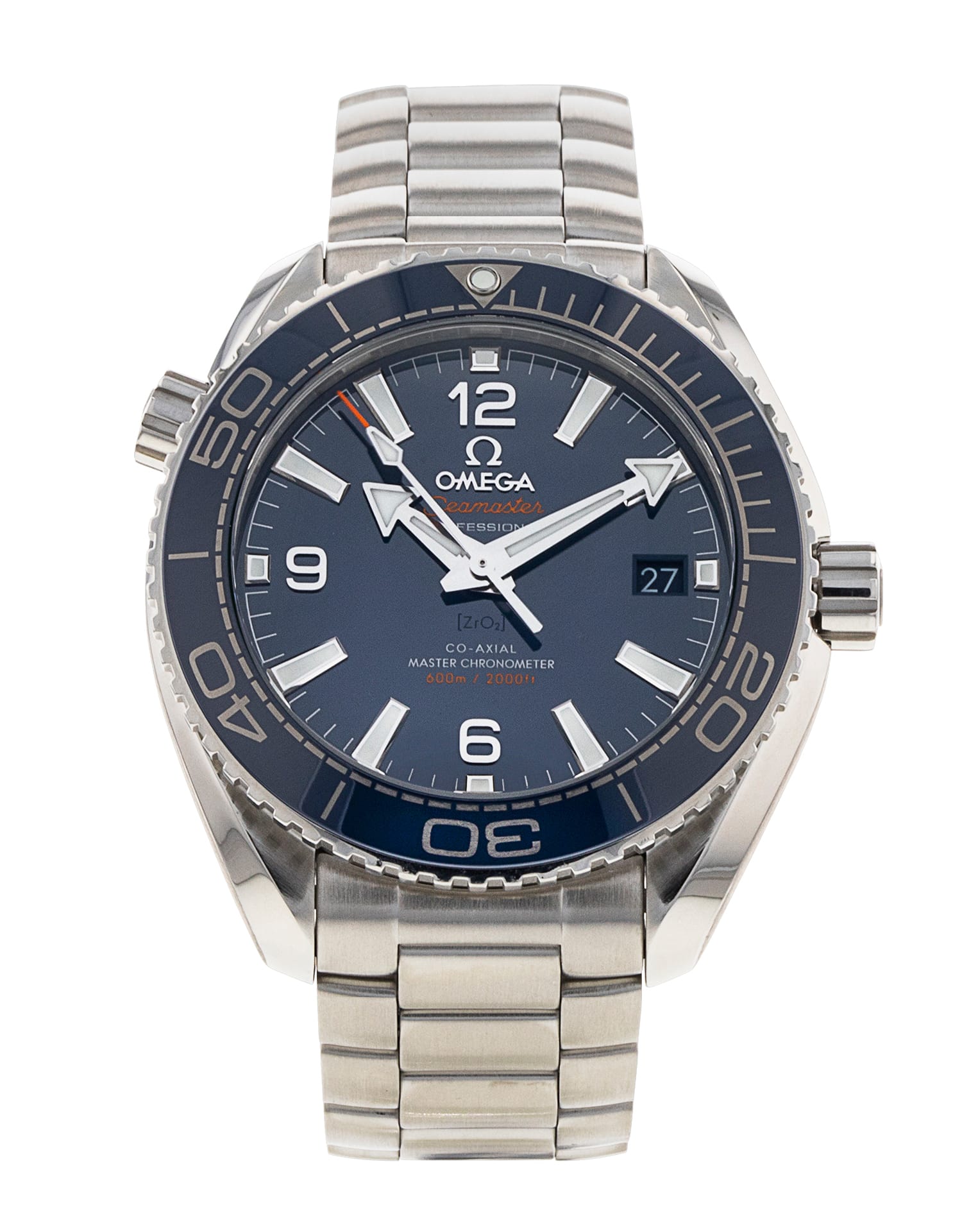 This Omega Planet Ocean 215.30.40.20.03.001 has a blue quarter arabic dial and a bracelet strap. This Omega has undergone a thorough inspection of accuracy, functionality and condition at our Omega certified service centre to determine the level of reconditioning required to meet our strict standards. It has also been checked against our records to ensure authenticity. All our watches have a 24-month warranty for your peace of mind.