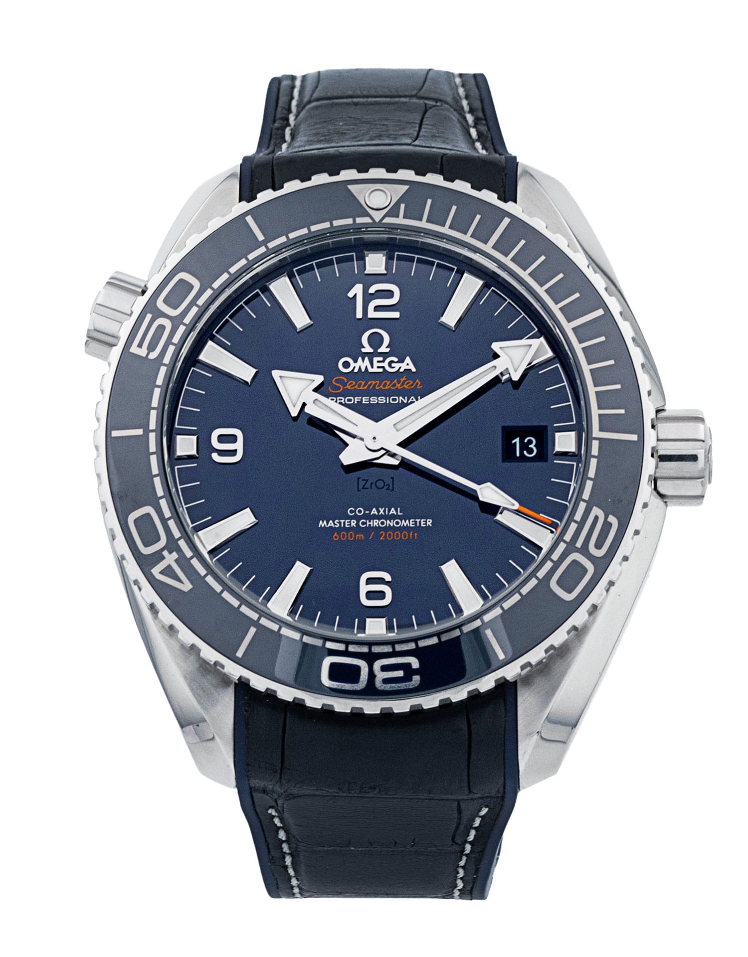 This Omega Planet Ocean 215.33.44.21.03.001 has a blue quarter arabic dial and a rubber strap. This Omega has undergone a thorough inspection of accuracy, functionality and condition at our Omega certified service centre to determine the level of reconditioning required to meet our strict standards. It has also been checked against our records to ensure authenticity. All our watches have a 24-month warranty for your peace of mind.