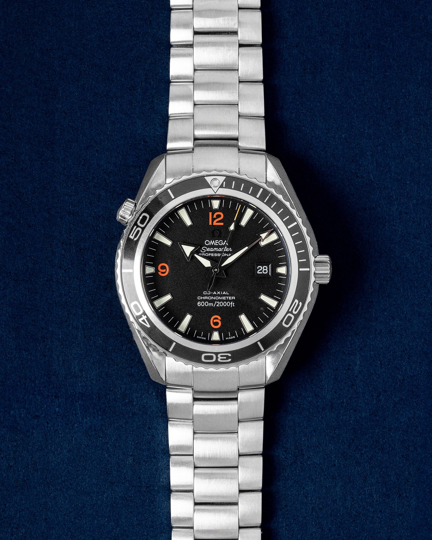 This Omega Planet Ocean 2201.51.00 has a black quarter arabic dial and a bracelet strap. This Omega has undergone a thorough inspection of accuracy, functionality and condition at our Omega certified service centre to determine the level of reconditioning required to meet our strict standards. It has also been checked against our records to ensure authenticity. All our watches have a 24-month warranty for your peace of mind.