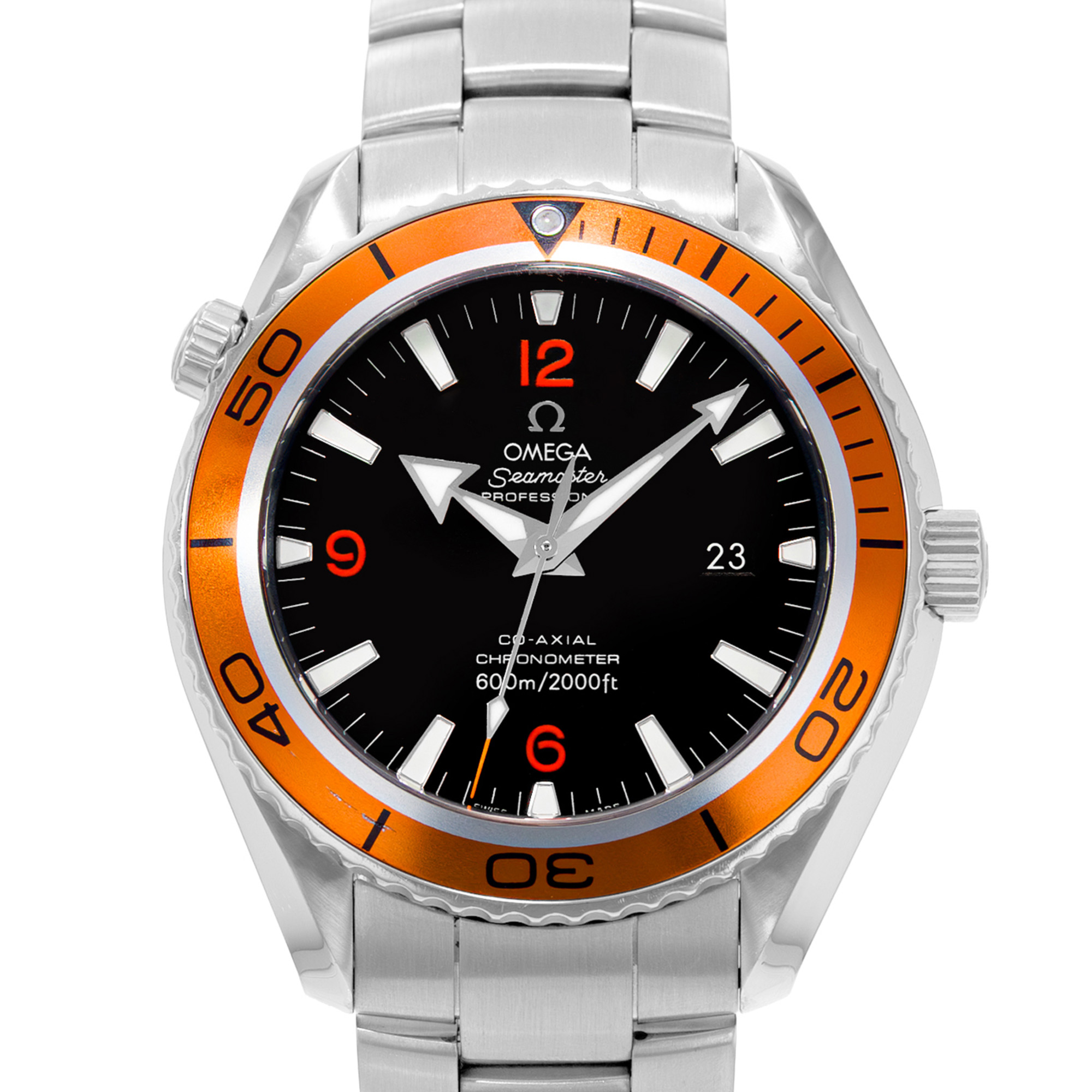 This Omega Planet Ocean 2208.50.00 has a black quarter arabic dial and a bracelet strap. This Omega has undergone a thorough inspection of accuracy, functionality and condition at our Omega certified service centre to determine the level of reconditioning required to meet our strict standards. It has also been checked against our records to ensure authenticity. All our watches have a 24-month warranty for your peace of mind.