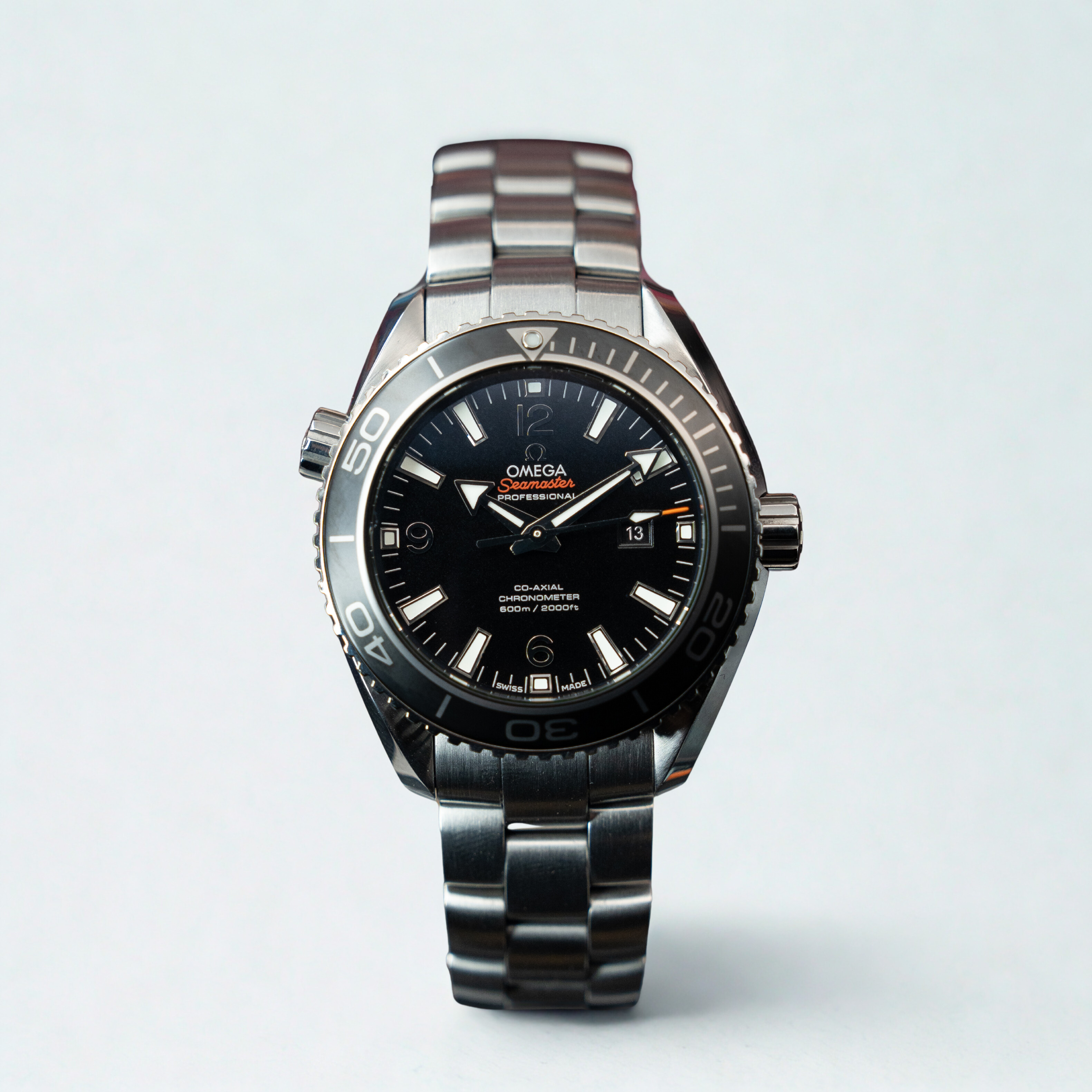 This Omega Planet Ocean 232.30.38.20.01.001 has a black quarter arabic dial and a bracelet strap. This Omega has undergone a thorough inspection of accuracy, functionality and condition at our Omega certified service centre to determine the level of reconditioning required to meet our strict standards. It has also been checked against our records to ensure authenticity. All our watches have a 24-month warranty for your peace of mind.