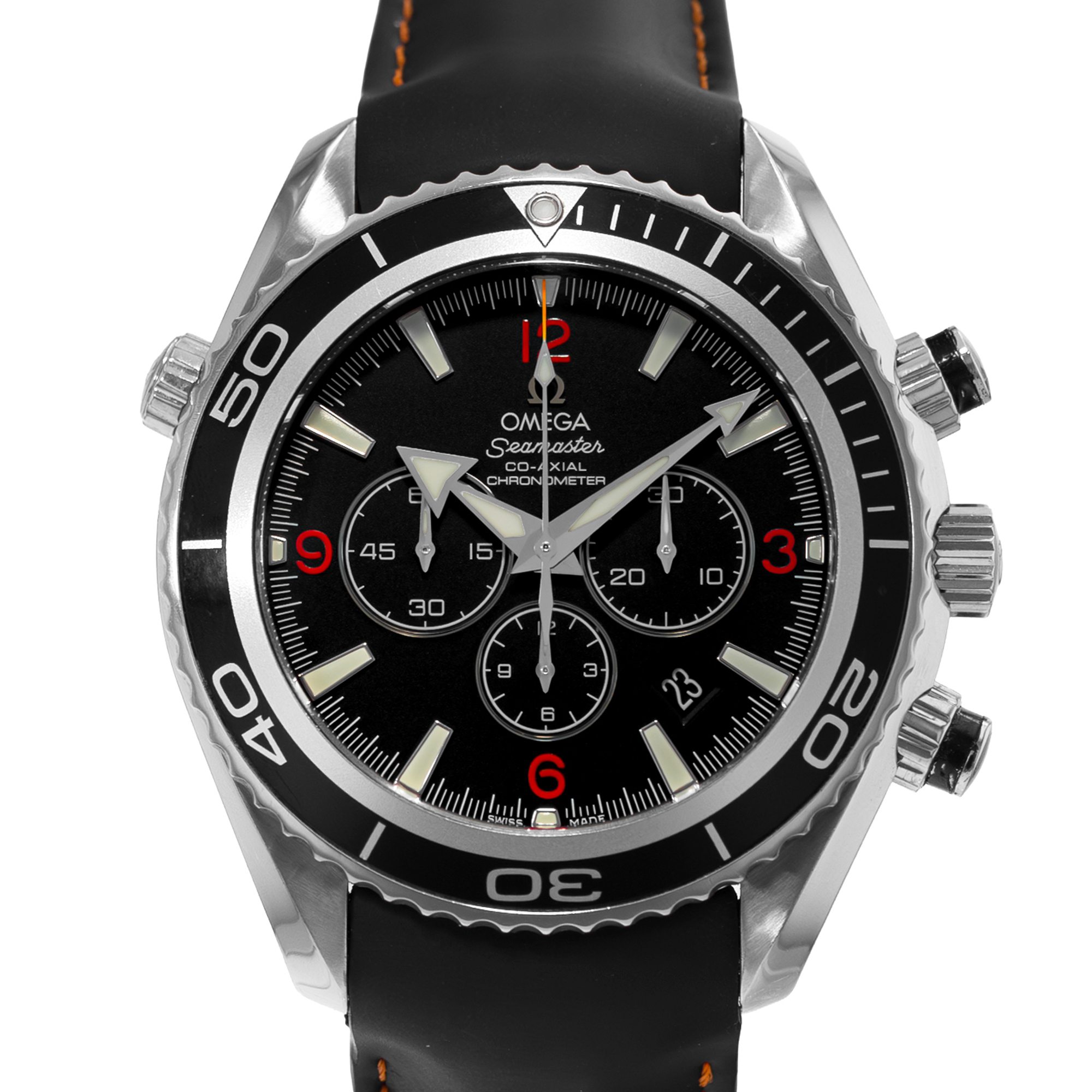 This Omega Planet Ocean 2910.51.82 has a black quarter arabic dial and a rubber strap. This Omega has undergone a thorough inspection of accuracy, functionality and condition at our Omega certified service centre to determine the level of reconditioning required to meet our strict standards. It has also been checked against our records to ensure authenticity. All our watches have a 24-month warranty for your peace of mind.