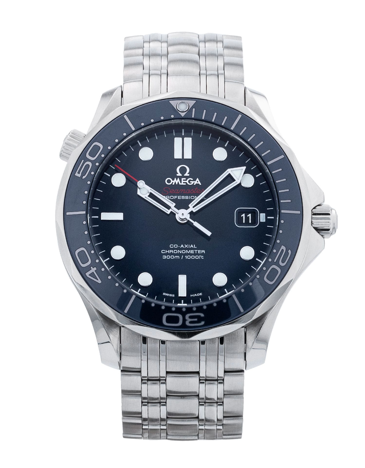 This Omega Seamaster 300m 212.30.41.20.03.001 has a blue dial and a bracelet strap. This Omega has undergone a thorough inspection of accuracy, functionality and condition at our Omega certified service centre to determine the level of reconditioning required to meet our strict standards. It has also been checked against our records to ensure authenticity. All our watches have a 24-month warranty for your peace of mind.
