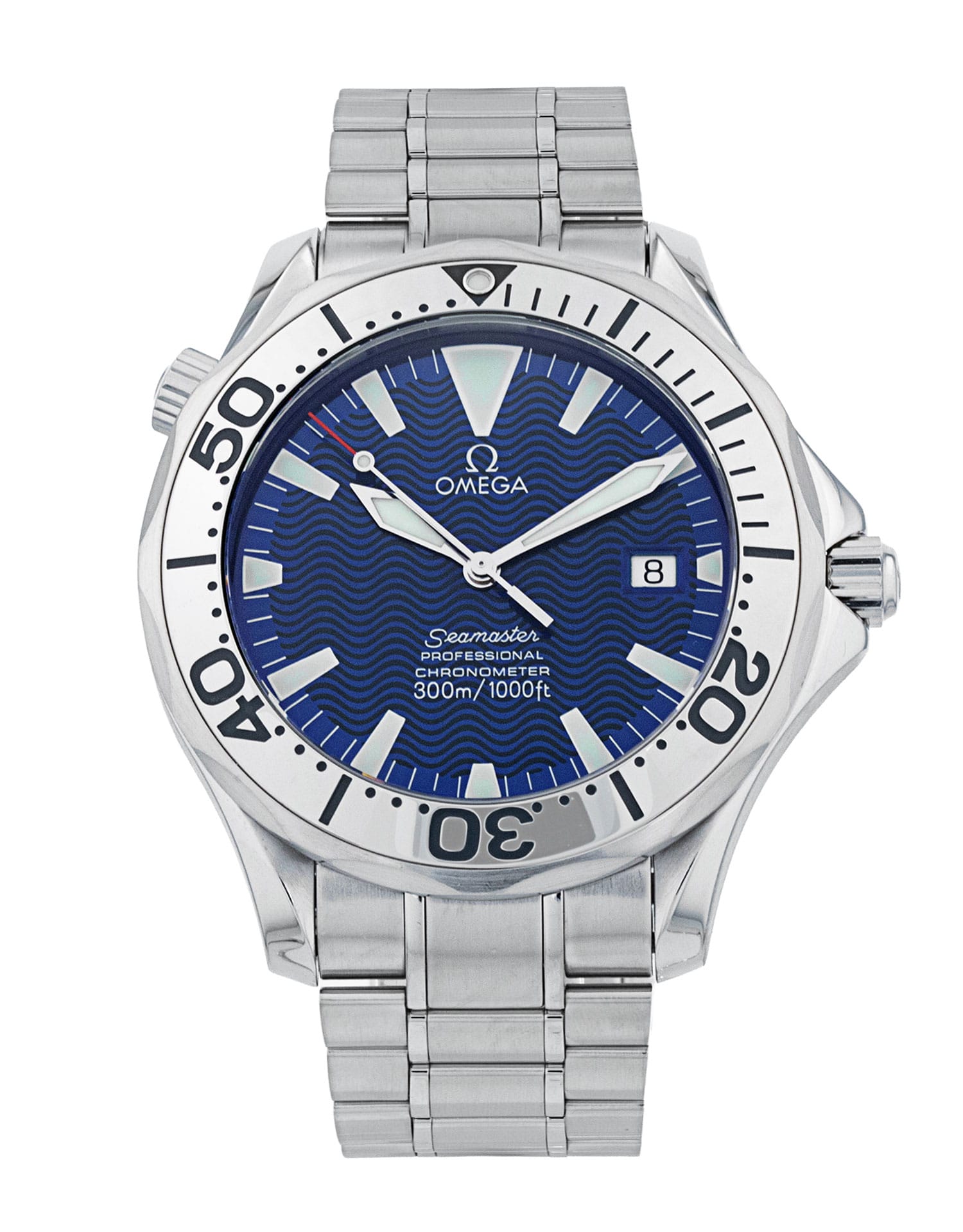 This Omega Seamaster 300m 2255.80.00 has a blue baton dial and a bracelet strap. This Omega has undergone a thorough inspection of accuracy, functionality and condition at our Omega certified service centre to determine the level of reconditioning required to meet our strict standards. It has also been checked against our records to ensure authenticity. All our watches have a 24-month warranty for your peace of mind.