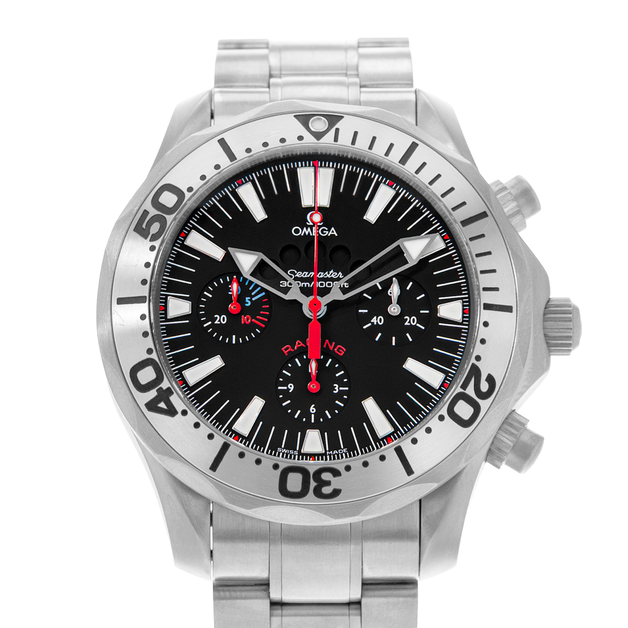 This Omega Seamaster 300m 2269.52.00 has a black dial, black sub dials dial and a bracelet strap. This Omega has undergone a thorough inspection of accuracy, functionality and condition at our Omega certified service centre to determine the level of reconditioning required to meet our strict standards. It has also been checked against our records to ensure authenticity. All our watches have a 24-month warranty for your peace of mind.