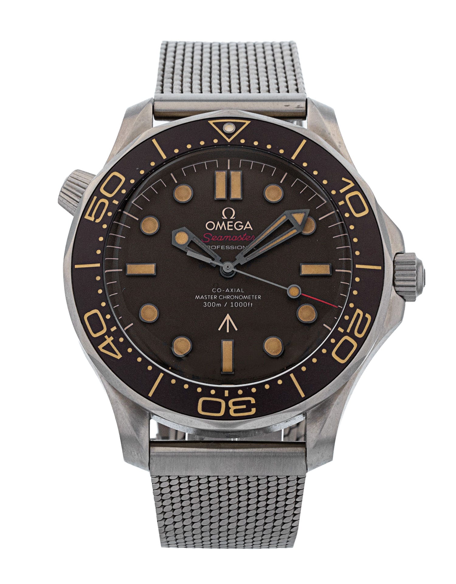 This Omega Seamaster Diver 300m - James Bond Edition 210.90.42.20.01.001 has a brown dial and a bracelet strap. This Omega has undergone a thorough inspection of accuracy, functionality and condition at our Omega certified service centre to determine the level of reconditioning required to meet our strict standards. It has also been checked against our records to ensure authenticity. Our watches have a 24-month warranty for your peace of mind, in conjunction with any remaining manufacturer’s warranty from new or from service.