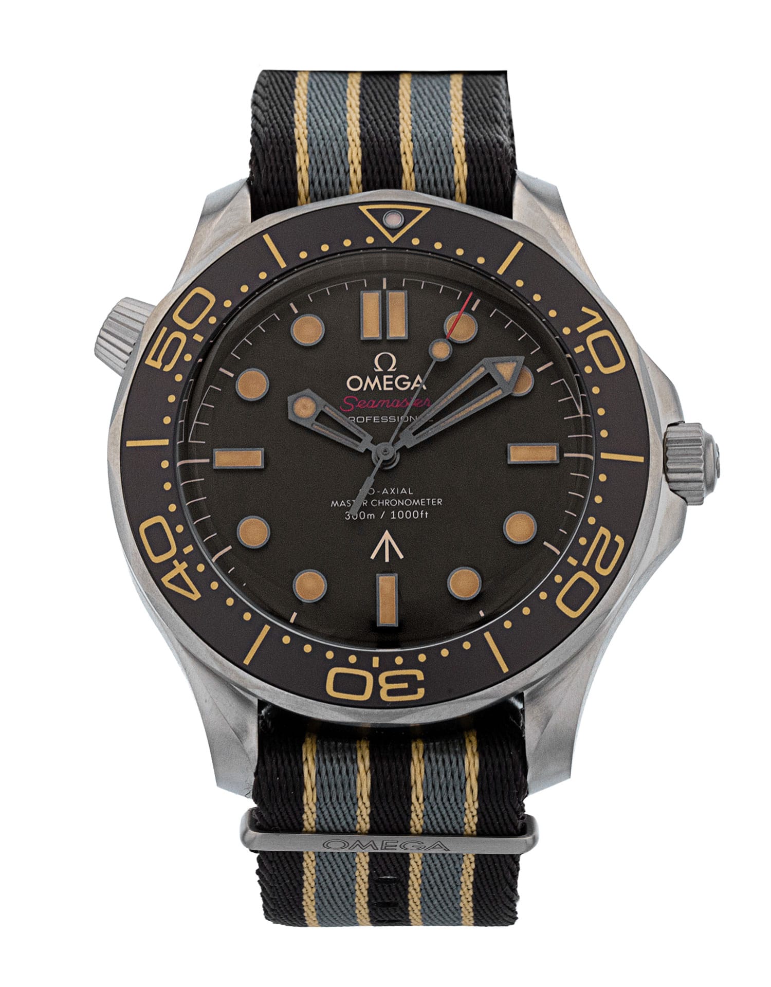 This Omega Seamaster Diver 300m - James Bond Edition 210.92.42.20.01.001 has a brown dial and a fabric strap. This Omega has undergone a thorough inspection of accuracy, functionality and condition at our Omega certified service centre to determine the level of reconditioning required to meet our strict standards. It has also been checked against our records to ensure authenticity. Our watches have a 24-month warranty for your peace of mind, in conjunction with any remaining manufacturer’s warranty from new or from service.