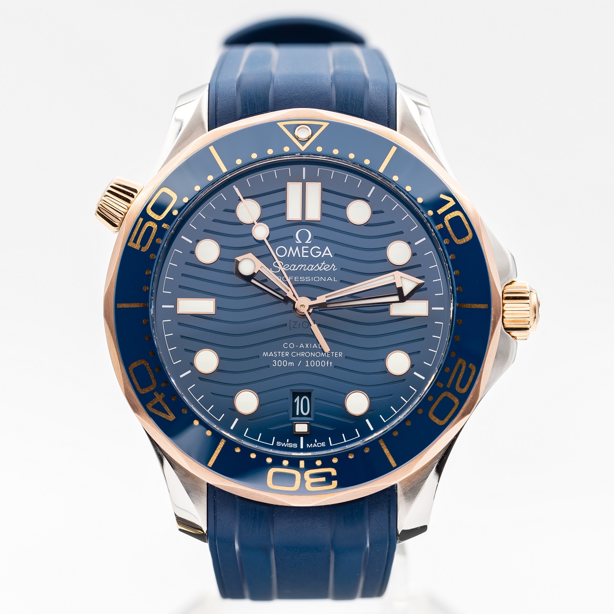 This Omega Seamaster Diver 300m 210.22.42.20.03.002 has a blue dial and a rubber strap. This Omega has undergone a thorough inspection of accuracy, functionality and condition at our Omega certified service centre to determine the level of reconditioning required to meet our strict standards. It has also been checked against our records to ensure authenticity. All our watches have a 24-month warranty for your peace of mind.