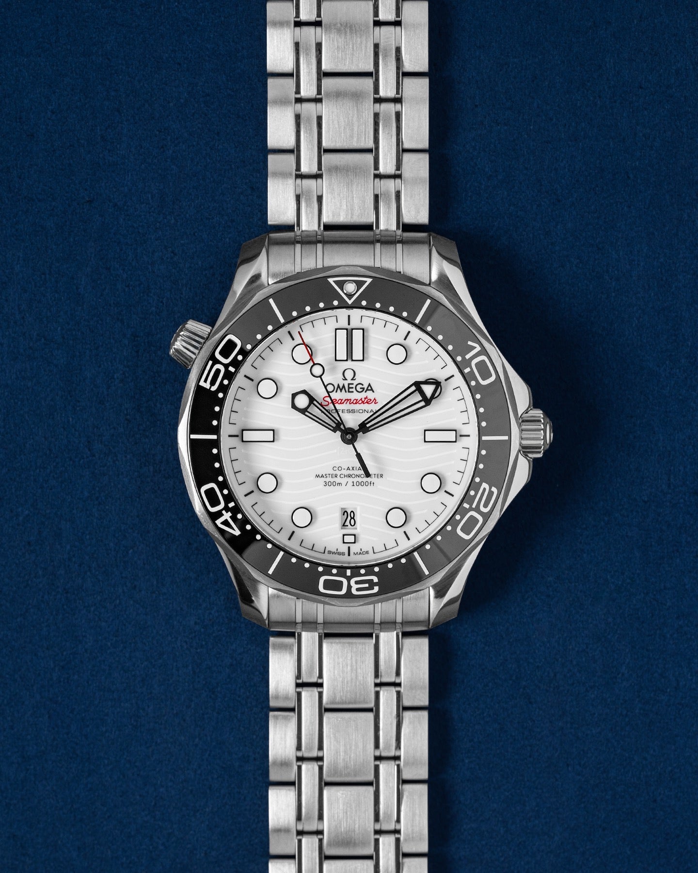 This Omega Seamaster Diver 300m 210.30.42.20.04.001 has a white dial and a bracelet strap. This Omega has undergone a thorough inspection of accuracy, functionality and condition at our Omega certified service centre to determine the level of reconditioning required to meet our strict standards. It has also been checked against our records to ensure authenticity. All our watches have a 24-month warranty for your peace of mind.