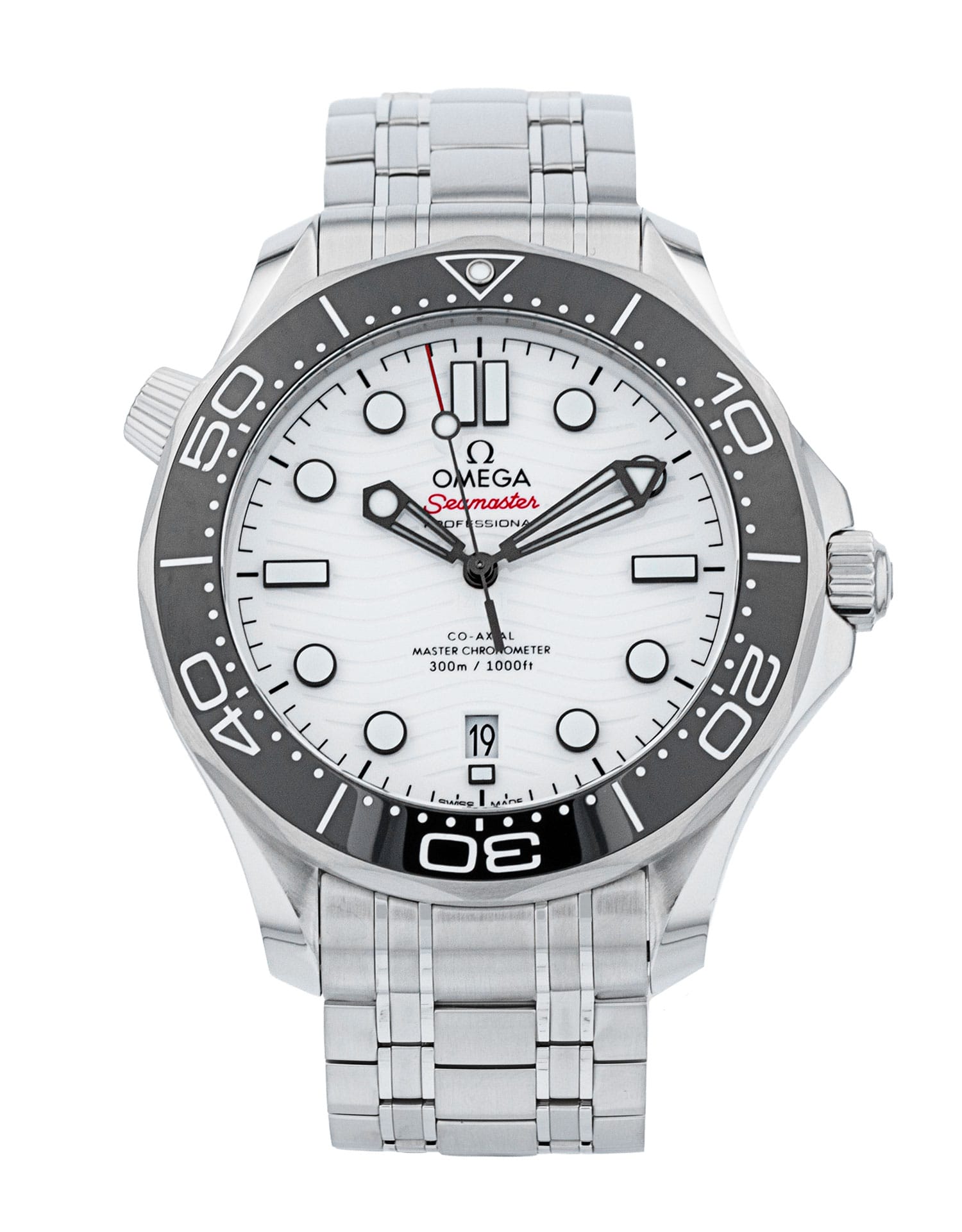 This Omega Seamaster Diver 300m 210.30.42.20.04.001 has a white dial and a bracelet strap. This Omega has undergone a thorough inspection of accuracy, functionality and condition at our Omega certified service centre to determine the level of reconditioning required to meet our strict standards. It has also been checked against our records to ensure authenticity. Our watches have a 24-month warranty for your peace of mind, in conjunction with any remaining manufacturer’s warranty from new or from service.