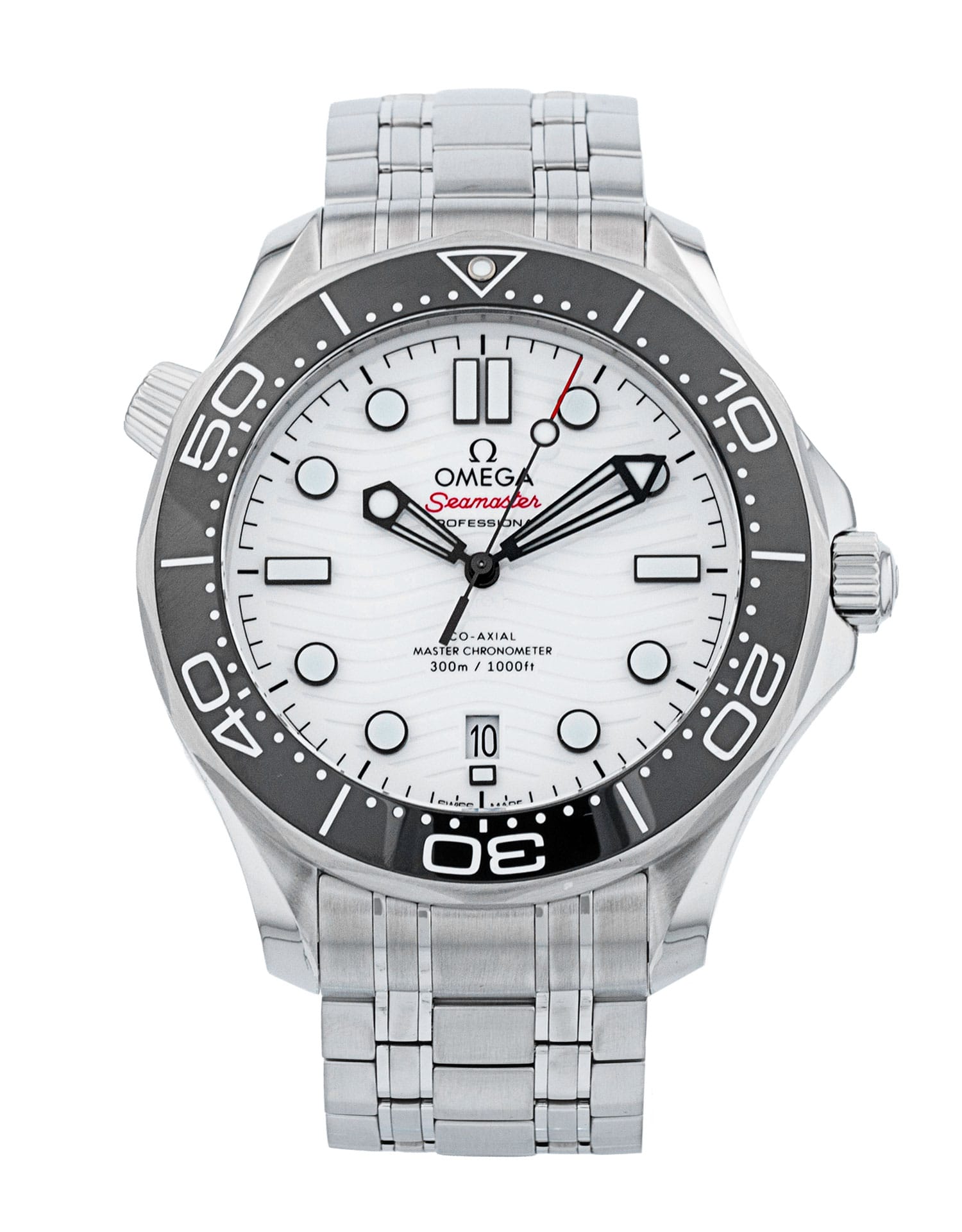 This Omega Seamaster Diver 300m 210.30.42.20.04.001 has a white dial and a bracelet strap. This Omega has undergone a thorough inspection of accuracy, functionality and condition at our Omega certified service centre to determine the level of reconditioning required to meet our strict standards. It has also been checked against our records to ensure authenticity. Our watches have a 24-month warranty for your peace of mind, in conjunction with any remaining manufacturer’s warranty from new or from service.