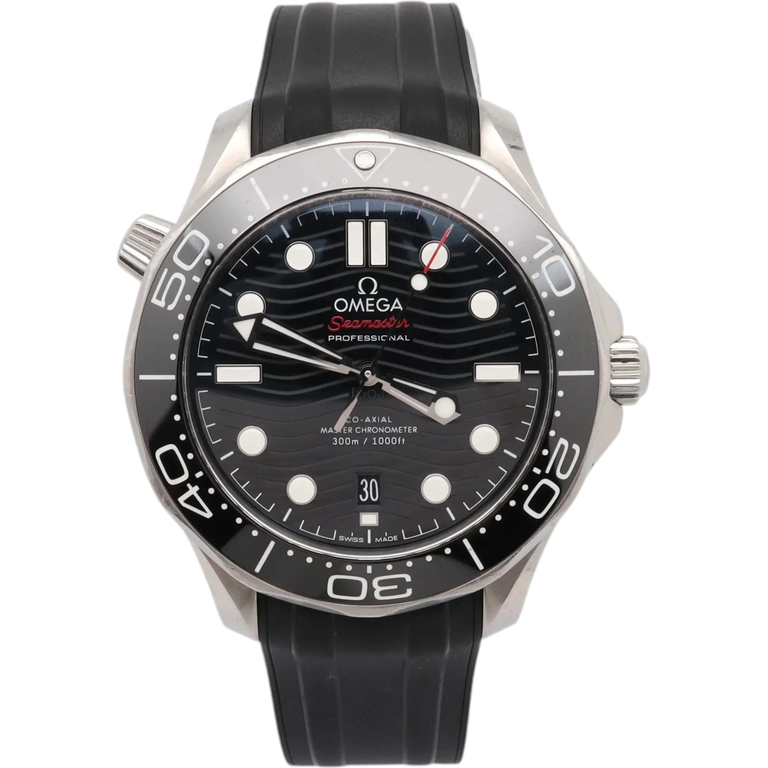 This Omega Seamaster Diver 300m 210.32.42.20.01.001 has a black dial and a rubber strap. This Omega has undergone a thorough inspection of accuracy, functionality and condition at our Omega certified service centre to determine the level of reconditioning required to meet our strict standards. It has also been checked against our records to ensure authenticity. All our watches have a 24-month warranty for your peace of mind.
