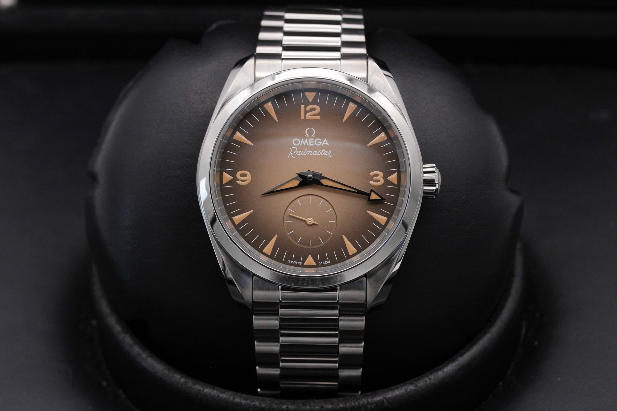 This Omega Seamaster Railmaster 235.10.38.20.13.001 has a brown quarter arabic dial and a bracelet strap. This Omega has undergone a thorough inspection of accuracy, functionality and condition at our Omega certified service centre to determine the level of reconditioning required to meet our strict standards. It has also been checked against our records to ensure authenticity. Our watches have a 24-month warranty for your peace of mind, in conjunction with any remaining manufacturer’s warranty from new or from service.