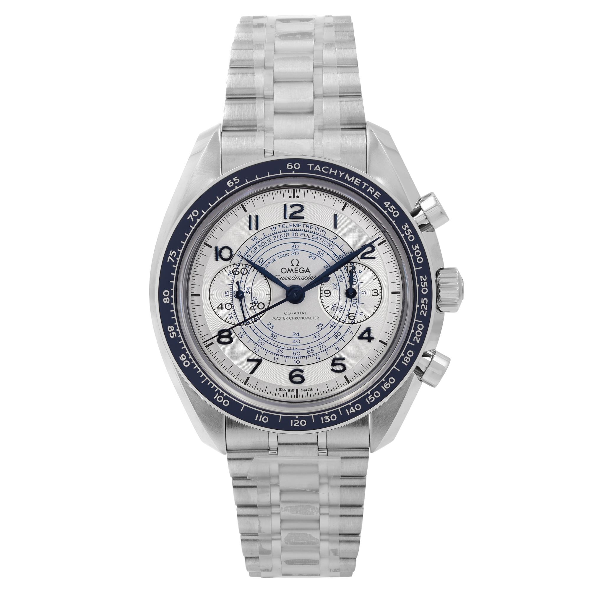 This Omega Speedmaster Chronoscope 329.30.43.51.02.001 has a silver arabic dial and a bracelet strap. This Omega has undergone a thorough inspection of accuracy, functionality and condition at our Omega certified service centre to determine the level of reconditioning required to meet our strict standards. It has also been checked against our records to ensure authenticity. All our watches have a 24-month warranty for your peace of mind.