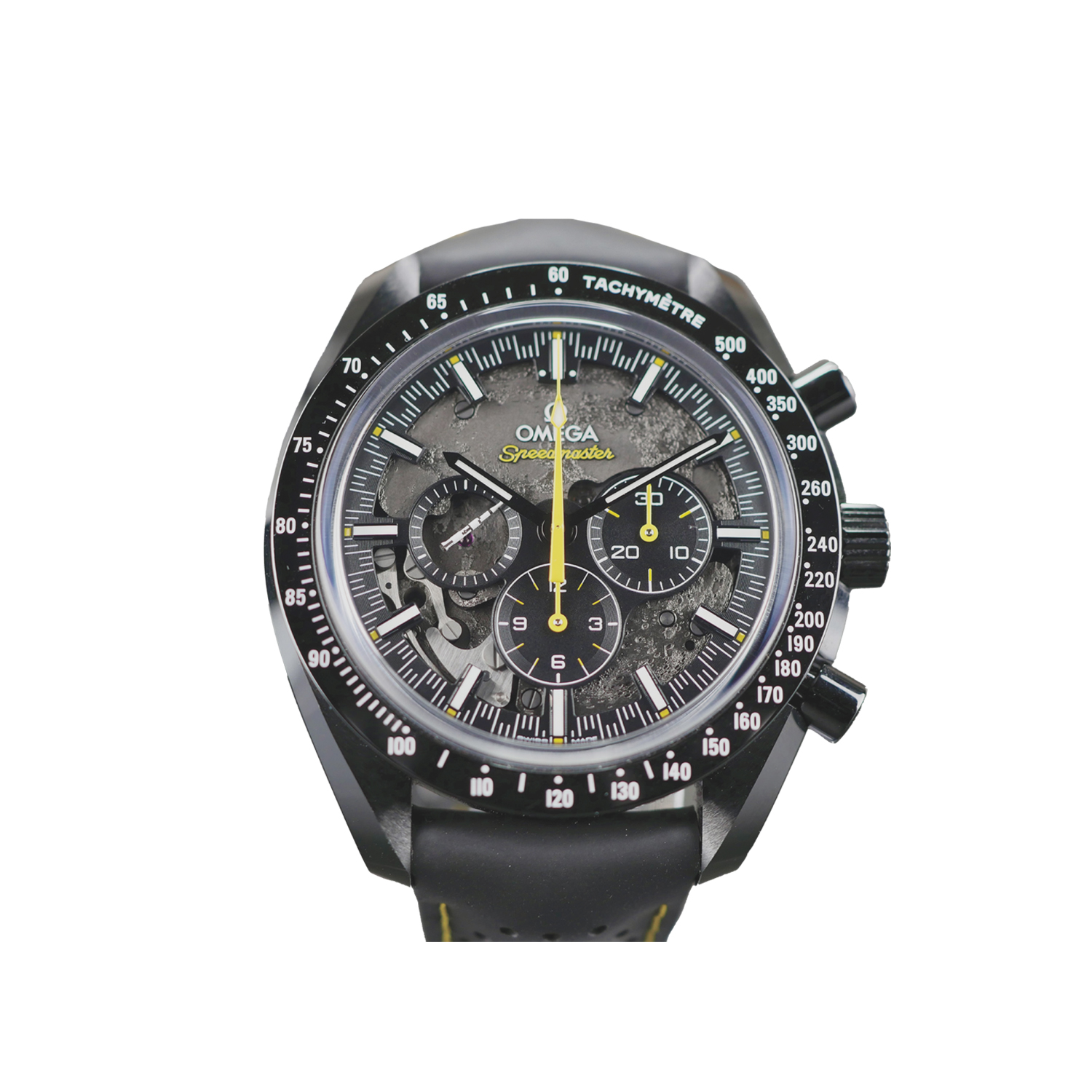 This Omega Speedmaster Dark Side of the Moon 310.92.44.50.01.001 has a black dial and a rubber strap. This Omega has undergone a thorough inspection of accuracy, functionality and condition at our Omega certified service centre to determine the level of reconditioning required to meet our strict standards. It has also been checked against our records to ensure authenticity. Our watches have a 24-month warranty for your peace of mind, in conjunction with any remaining manufacturer’s warranty from new or from service.