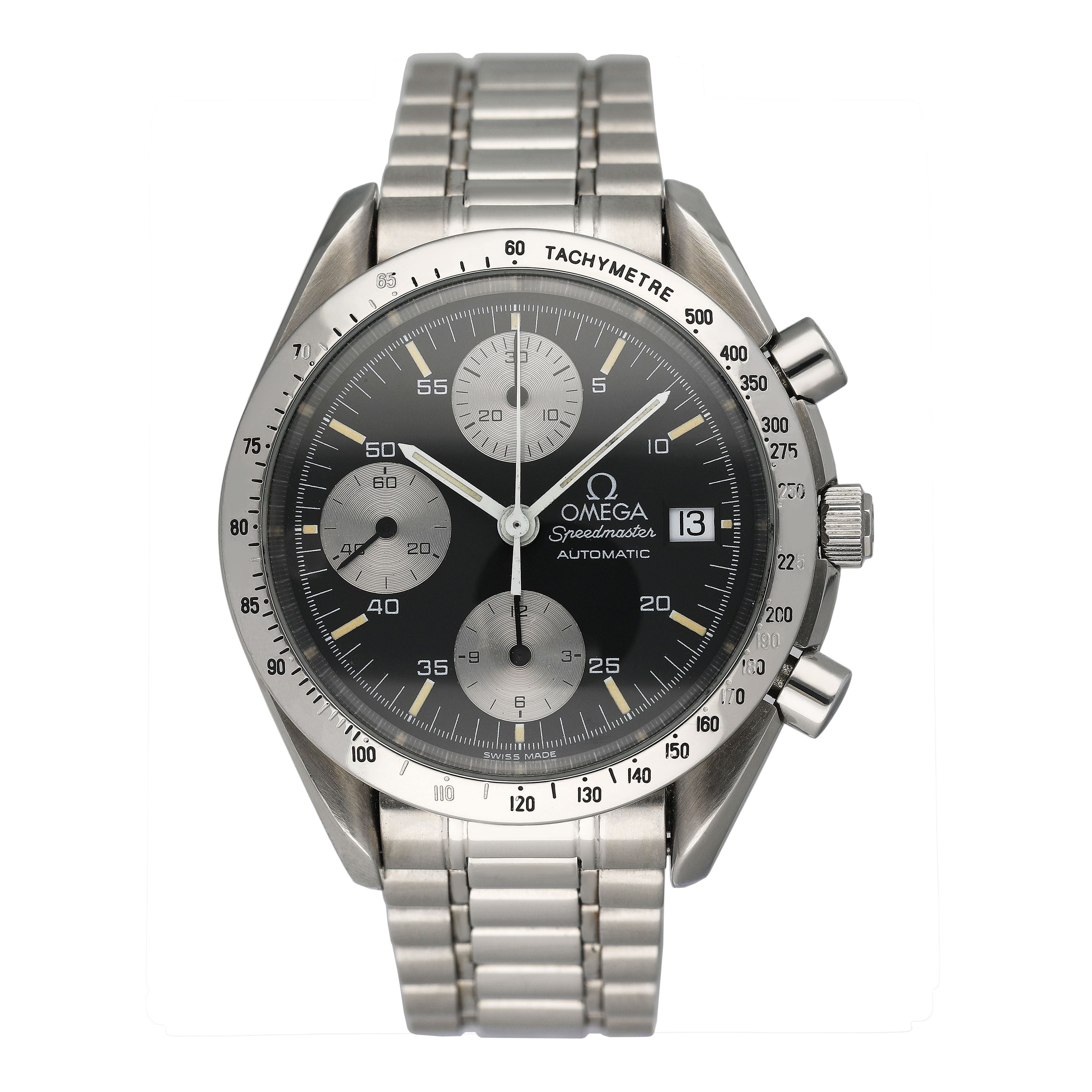 This Omega Speedmaster Date 3511.50.00 has a black baton - silver sub-dials dial and a bracelet strap. This Omega has undergone a thorough inspection of accuracy, functionality and condition at our Omega certified service centre to determine the level of reconditioning required to meet our strict standards. It has also been checked against our records to ensure authenticity. All our watches have a 24-month warranty for your peace of mind.