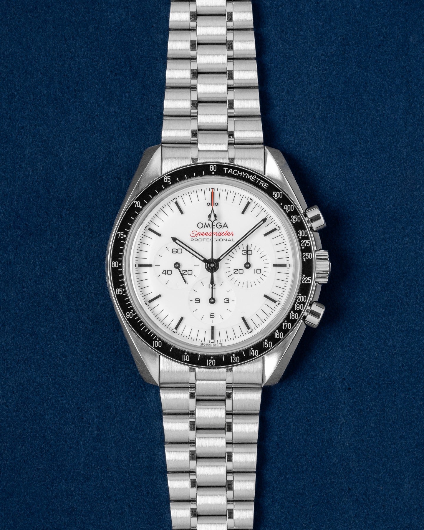 This Omega Speedmaster Moonwatch Professional 310.30.42.50.04.001 has a white baton dial and a bracelet strap. This Omega has undergone a thorough inspection of accuracy, functionality and condition at our Omega certified service centre to determine the level of reconditioning required to meet our strict standards. It has also been checked against our records to ensure authenticity. Our watches have a 24-month warranty for your peace of mind, in conjunction with any remaining manufacturer’s warranty from new or from service.