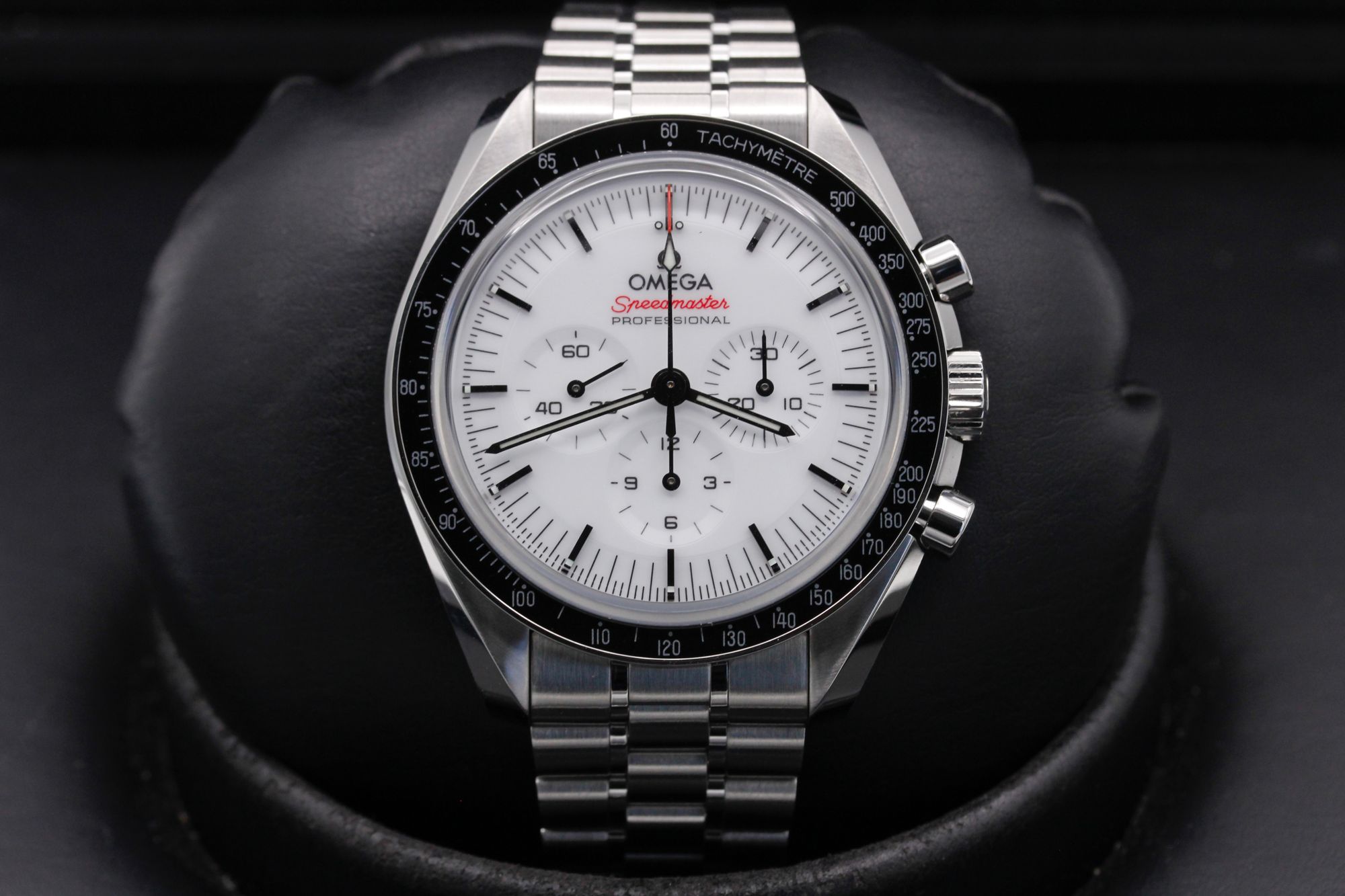 This Omega Speedmaster Moonwatch Professional 310.30.42.50.04.001 has a white baton dial and a bracelet strap. This Omega has undergone a thorough inspection of accuracy, functionality and condition at our Omega certified service centre to determine the level of reconditioning required to meet our strict standards. It has also been checked against our records to ensure authenticity. Our watches have a 24-month warranty for your peace of mind, in conjunction with any remaining manufacturer’s warranty from new or from service.