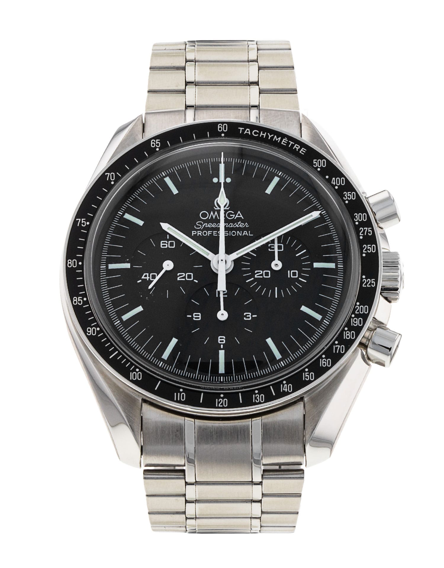 This Omega Speedmaster Moonwatch 3570.50.00 has a black baton dial and a bracelet strap. This Omega has undergone a thorough inspection of accuracy, functionality and condition at our Omega certified service centre to determine the level of reconditioning required to meet our strict standards. It has also been checked against our records to ensure authenticity. All our watches have a 24-month warranty for your peace of mind.