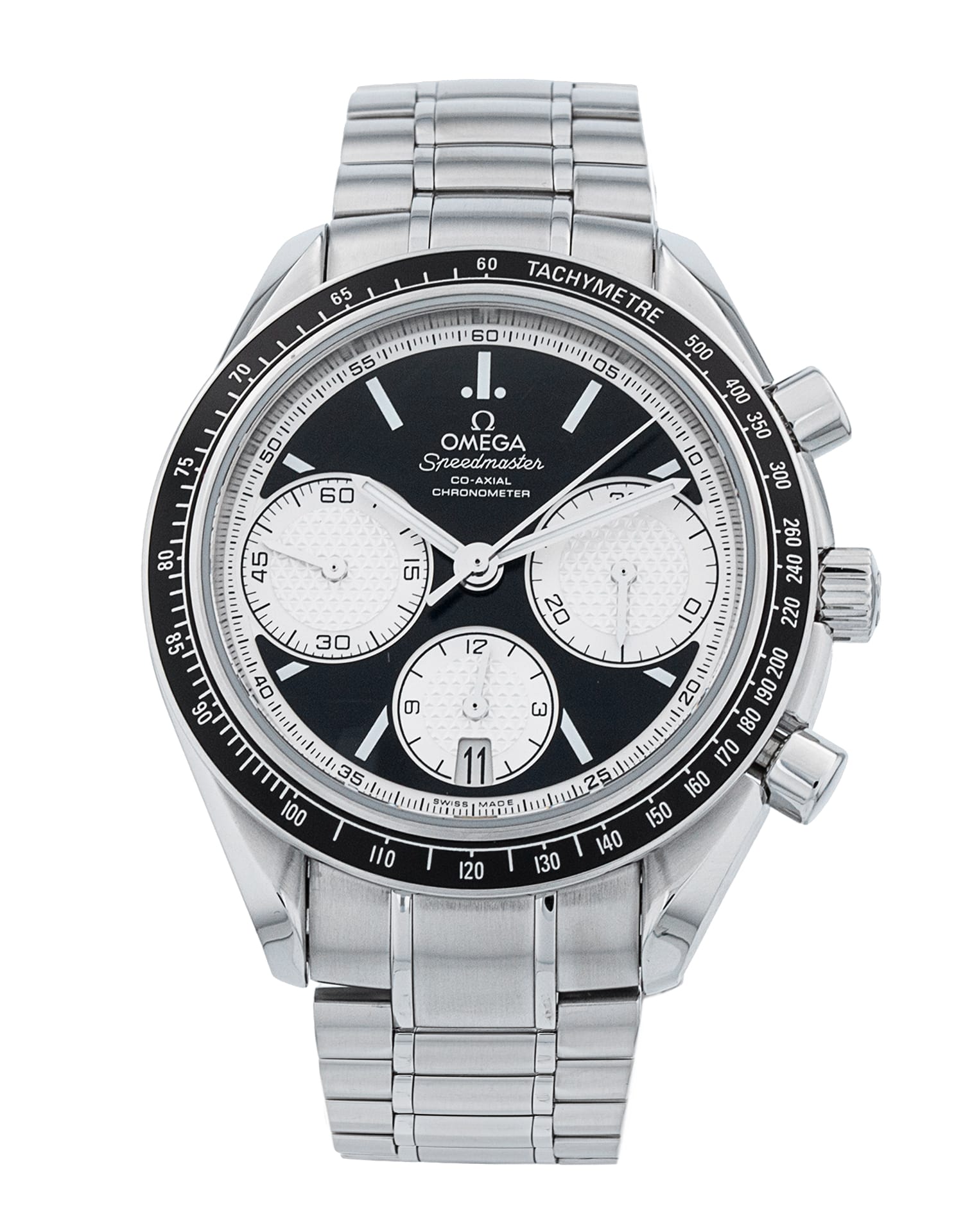 This Omega Speedmaster Racing 326.30.40.50.01.002 has a black baton dial and a bracelet strap. This Omega has undergone a thorough inspection of accuracy, functionality and condition at our Omega certified service centre to determine the level of reconditioning required to meet our strict standards. It has also been checked against our records to ensure authenticity. All our watches have a 24-month warranty for your peace of mind.