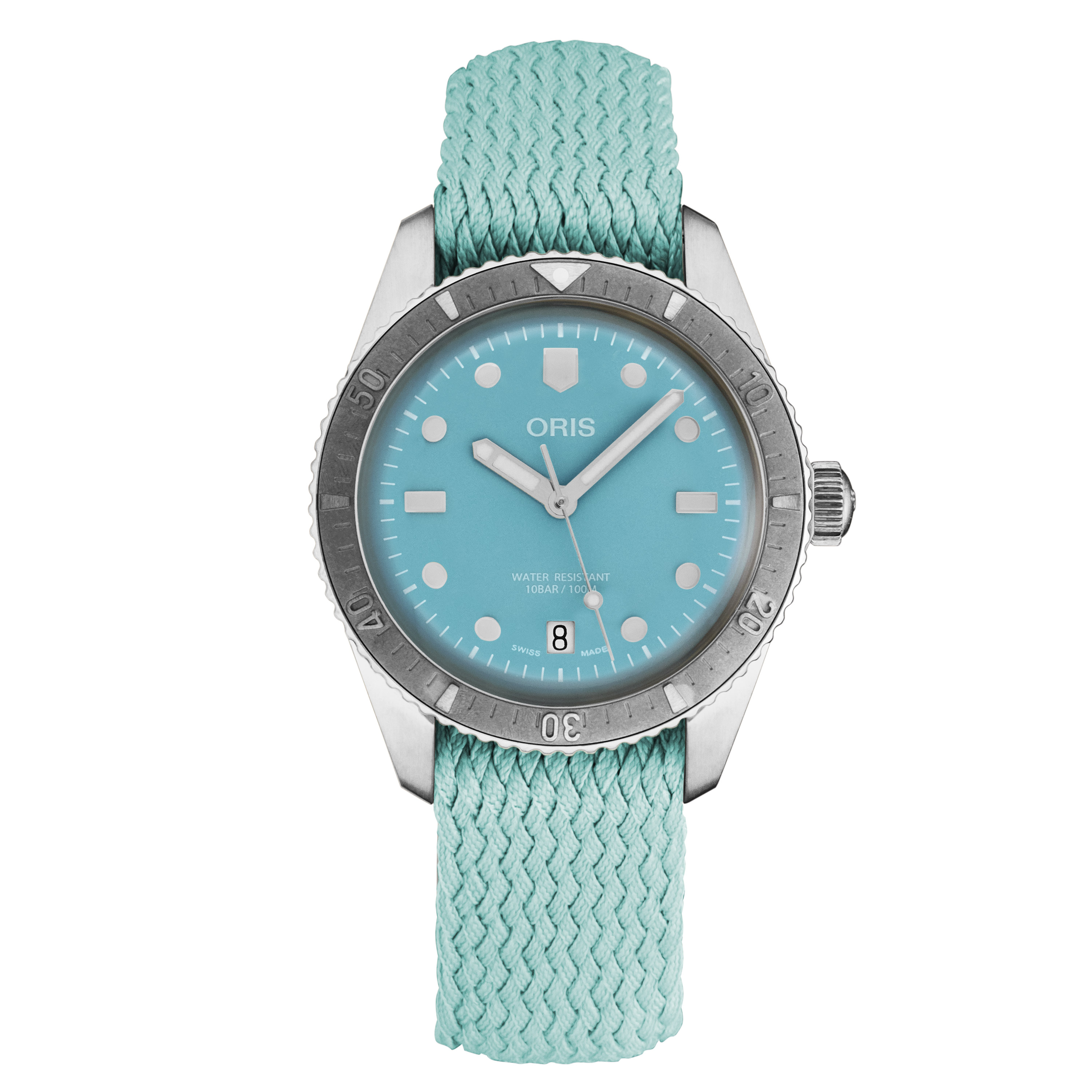 This Oris Divers 01 733 7771 4055-07 3 19 02S has a blue dial and a fabric strap. This Oris has undergone a thorough inspection of water resistance, accuracy, functionality and condition to determine the level of reconditioning required to meet our strict standards. It has also been referenced against technical documents and manufacturer records where available to ensure authenticity and a clean history. All our watches have a 24-month warranty for your peace of mind.