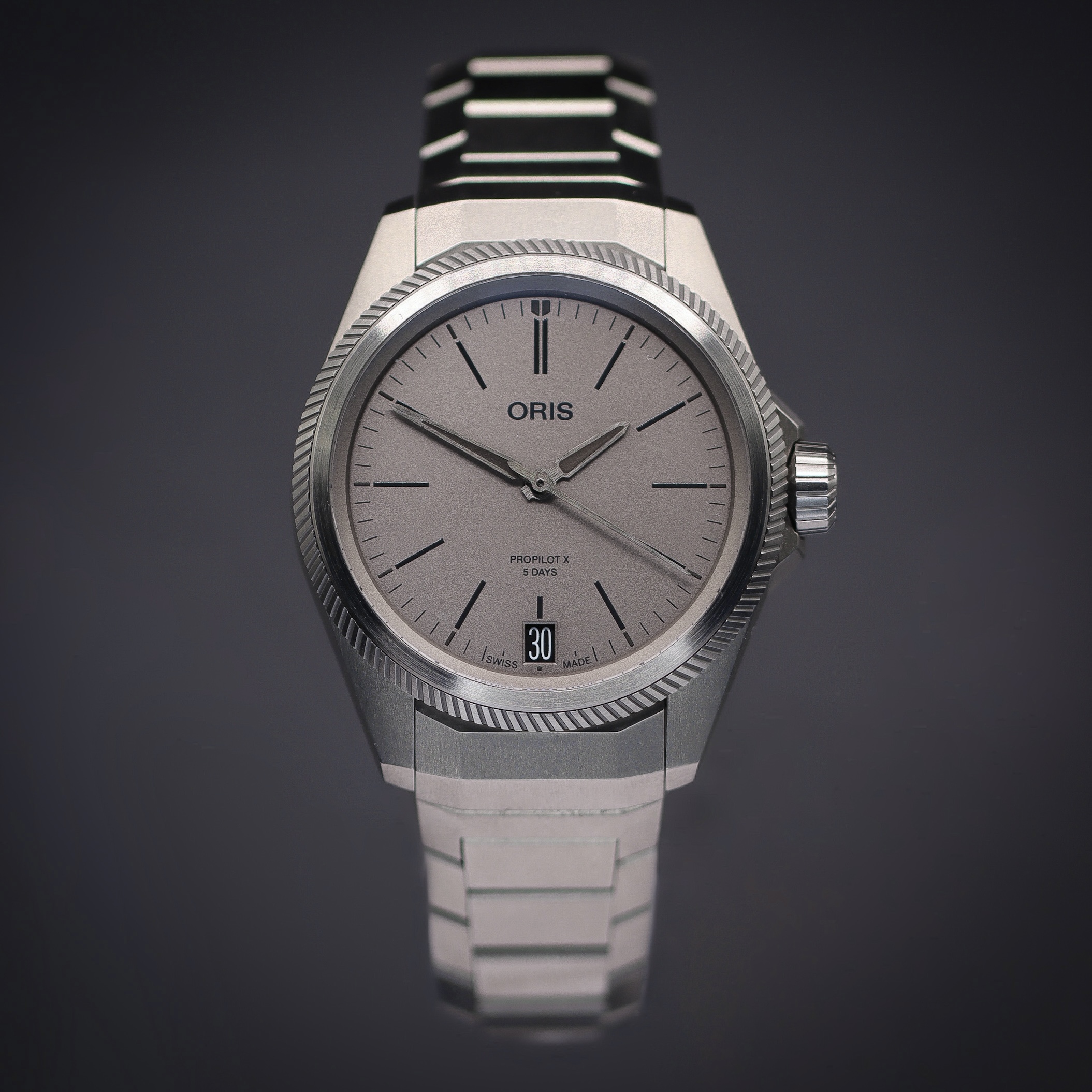 This Oris Propilot 01 400 7778 7153-07 7 20 01TLC has a grey dial and a bracelet strap. This Oris has undergone a thorough inspection of water resistance, accuracy, functionality and condition to determine the level of reconditioning required to meet our strict standards. It has also been referenced against technical documents and manufacturer records where available to ensure authenticity and a clean history. Our watches have a 24-month warranty for your peace of mind, in conjunction with any remaining manufacturer’s warranty from new or from service.