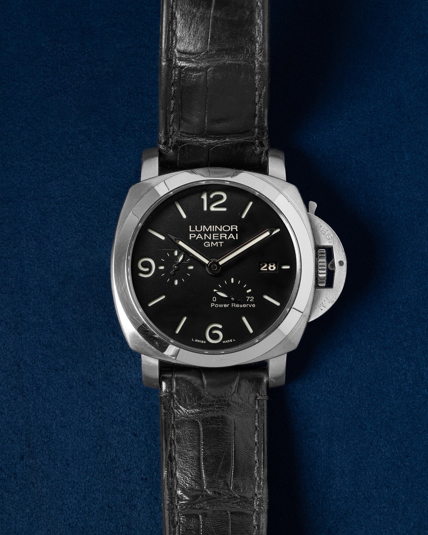 This Panerai Luminor 1950 PAM00321 has a black quarter arabic dial and a leather strap. This Panerai has undergone a thorough inspection of accuracy, functionality and condition at our Panerai certified service centre to determine the level of reconditioning required to meet our strict standards. It has also been checked against our records to ensure authenticity. All our watches have a 24-month warranty for your peace of mind.