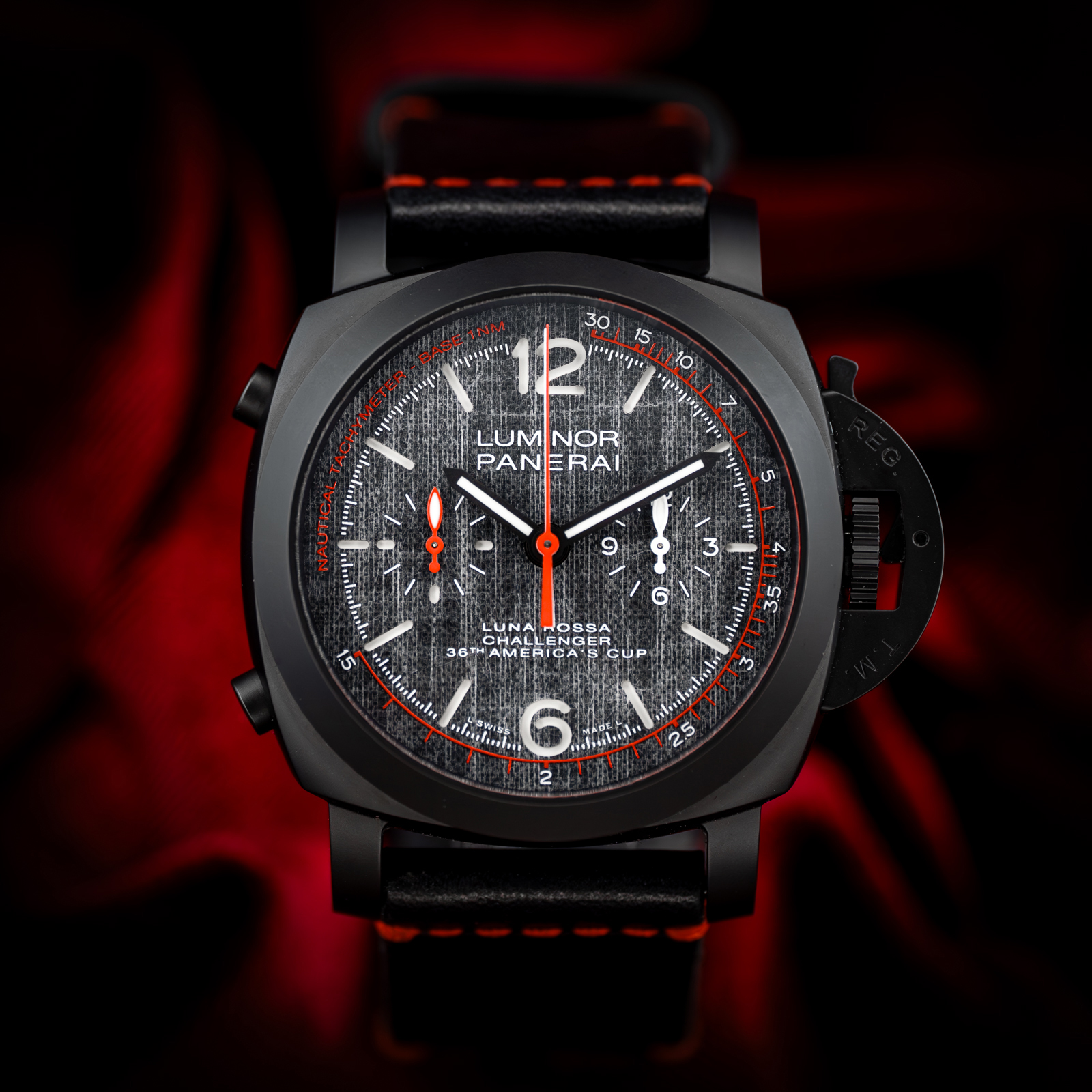 This Panerai Luminor Luna Rossa PAM01037 has a grey baton dial and a leather strap. This Panerai has undergone a thorough inspection of accuracy, functionality and condition at our Panerai certified service centre to determine the level of reconditioning required to meet our strict standards. It has also been checked against our records to ensure authenticity. Our watches have a 24-month warranty for your peace of mind, in conjunction with any remaining manufacturer’s warranty from new or from service.
