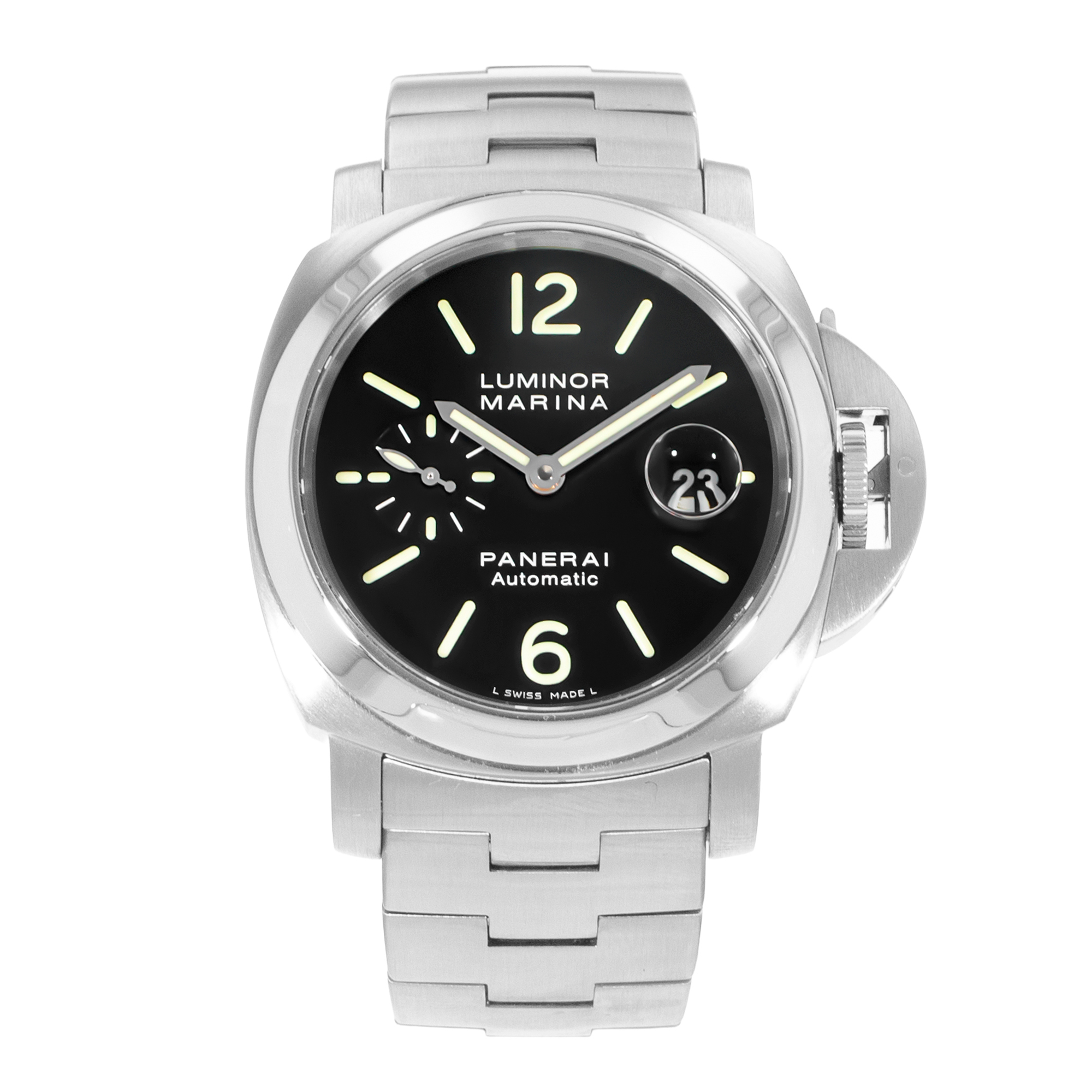 This Panerai Luminor Marina PAM00299 has a black baton dial and a bracelet strap. This Panerai has undergone a thorough inspection of accuracy, functionality and condition at our Panerai certified service centre to determine the level of reconditioning required to meet our strict standards. It has also been checked against our records to ensure authenticity. All our watches have a 24-month warranty for your peace of mind.