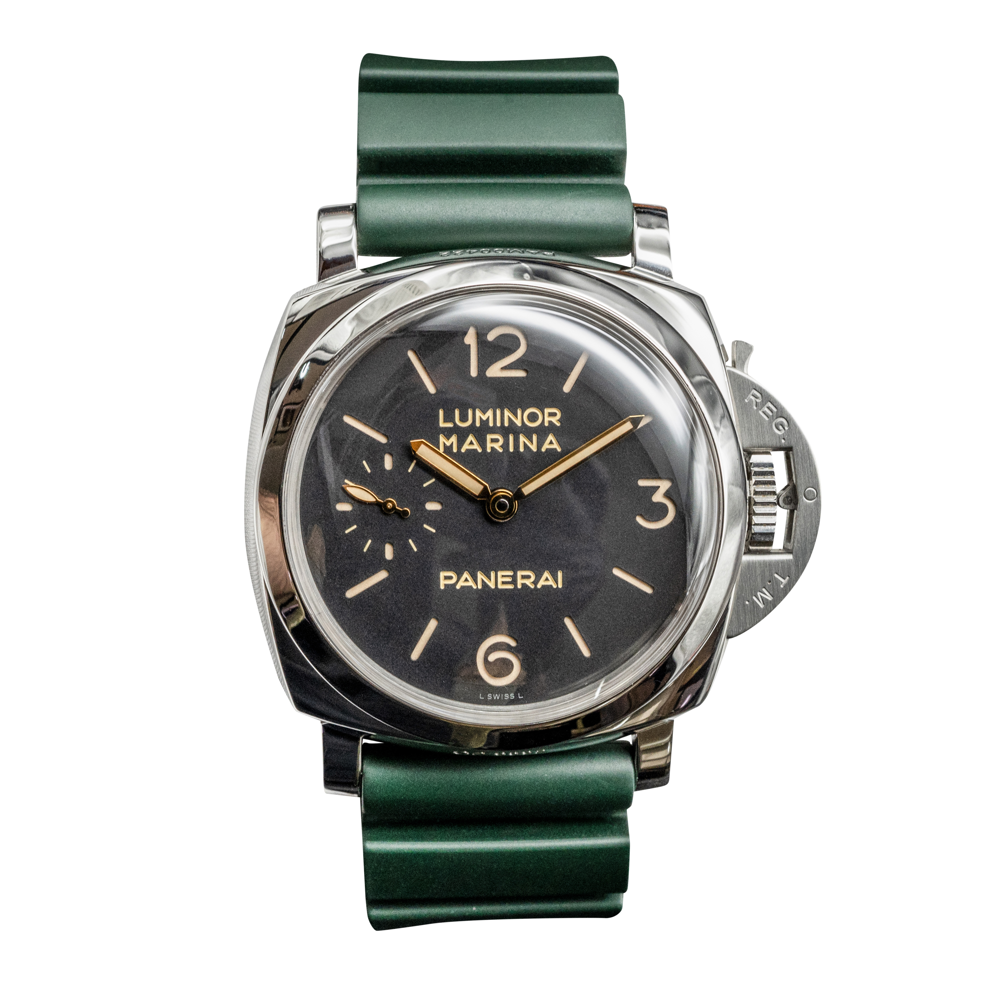 This Panerai Luminor Marina PAM00422 has a black quarter arabic dial and a rubber strap. This Panerai has undergone a thorough inspection of accuracy, functionality and condition at our Panerai certified service centre to determine the level of reconditioning required to meet our strict standards. It has also been checked against our records to ensure authenticity. All our watches have a 24-month warranty for your peace of mind.