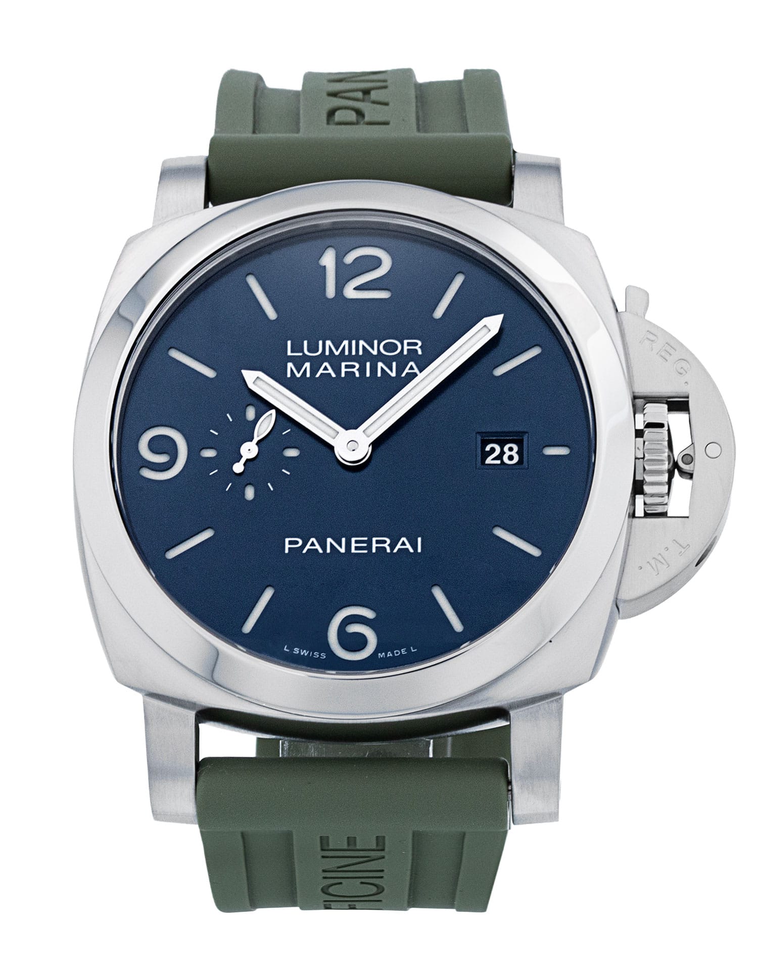 This Panerai Luminor Marina PAM03313 has a blue quarter arabic dial and a rubber strap. This Panerai has undergone a thorough inspection of accuracy, functionality and condition at our Panerai certified service centre to determine the level of reconditioning required to meet our strict standards. It has also been checked against our records to ensure authenticity. Our watches have a 24-month warranty for your peace of mind, in conjunction with any remaining manufacturer’s warranty from new or from service.