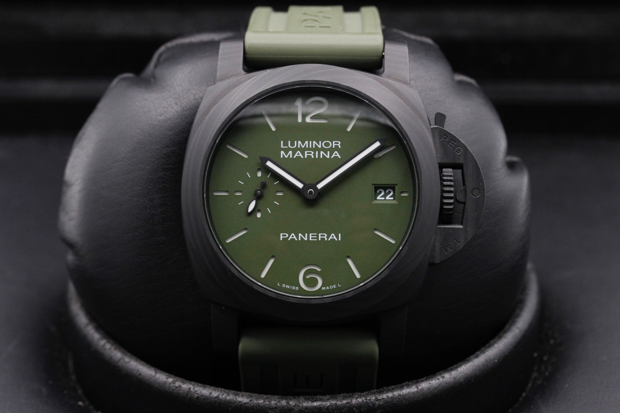 This Panerai Luminor Quaranta PAM01526 has a green dial and a rubber strap. This Panerai has undergone a thorough inspection of accuracy, functionality and condition at our Panerai certified service centre to determine the level of reconditioning required to meet our strict standards. It has also been checked against our records to ensure authenticity. Our watches have a 24-month warranty for your peace of mind, in conjunction with any remaining manufacturer’s warranty from new or from service.