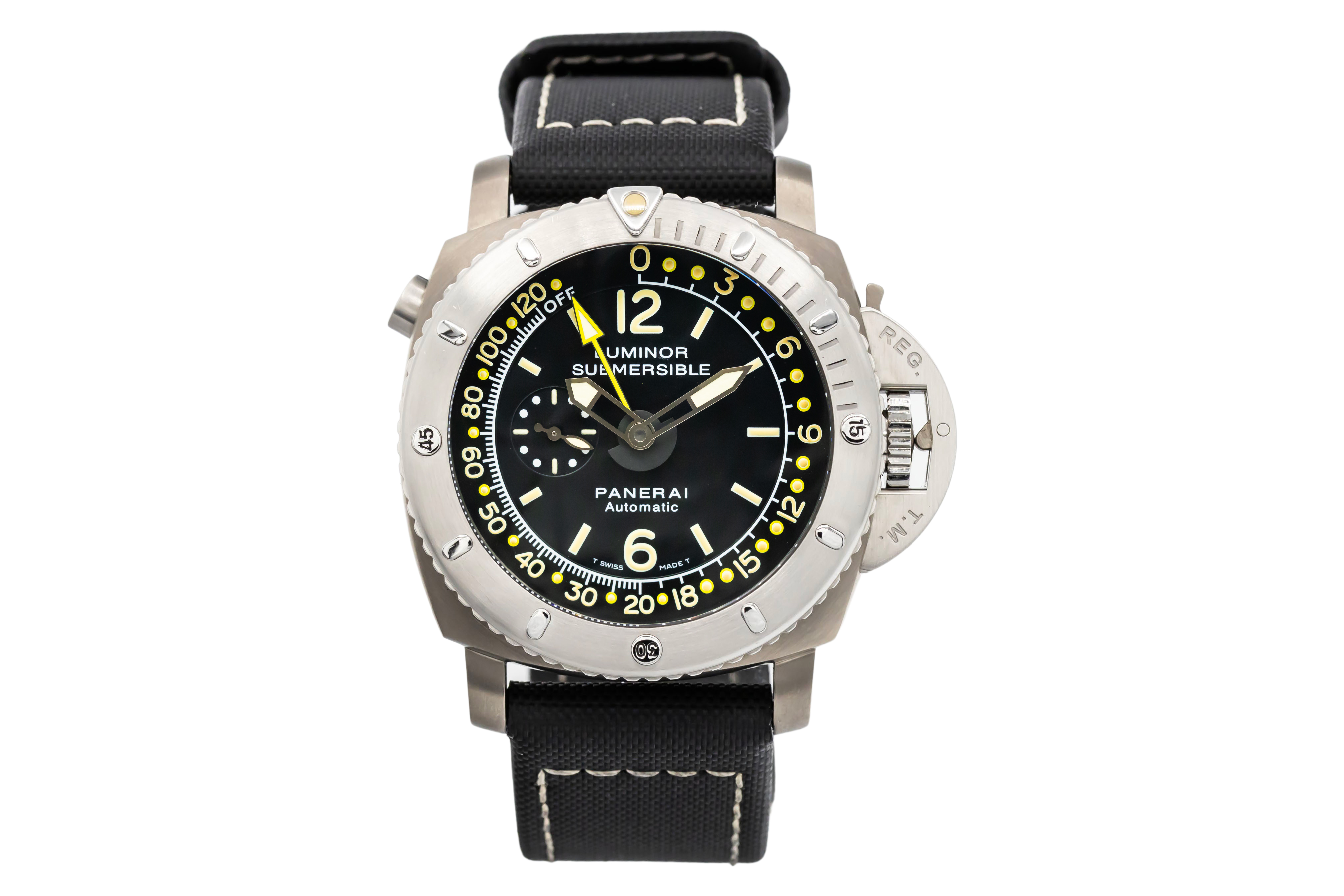 Panerai has a long history of making stylish and super-reliable watches for professional divers, beginning with its famed WW2 contract for the Italian Navy's “Frogmen”. The PAM Submersible pieces are among Panerai's finest diving tools, and this one is particularly remarkable. While the watch runs on a superb Swiss mechanical movement, an electronic module has also been fitted. Consisting of a pressure transducer, microprocessor, lithium battery and other components, it acts as a depth gauge, allowing wearers to measure their distance below the surface on a three-part scale around the outside of the dial. The movement has achieved COSC certification, and so too the depth gauge has been independently tested and certified by the Swiss Federal Office for Metrology (METAS).
