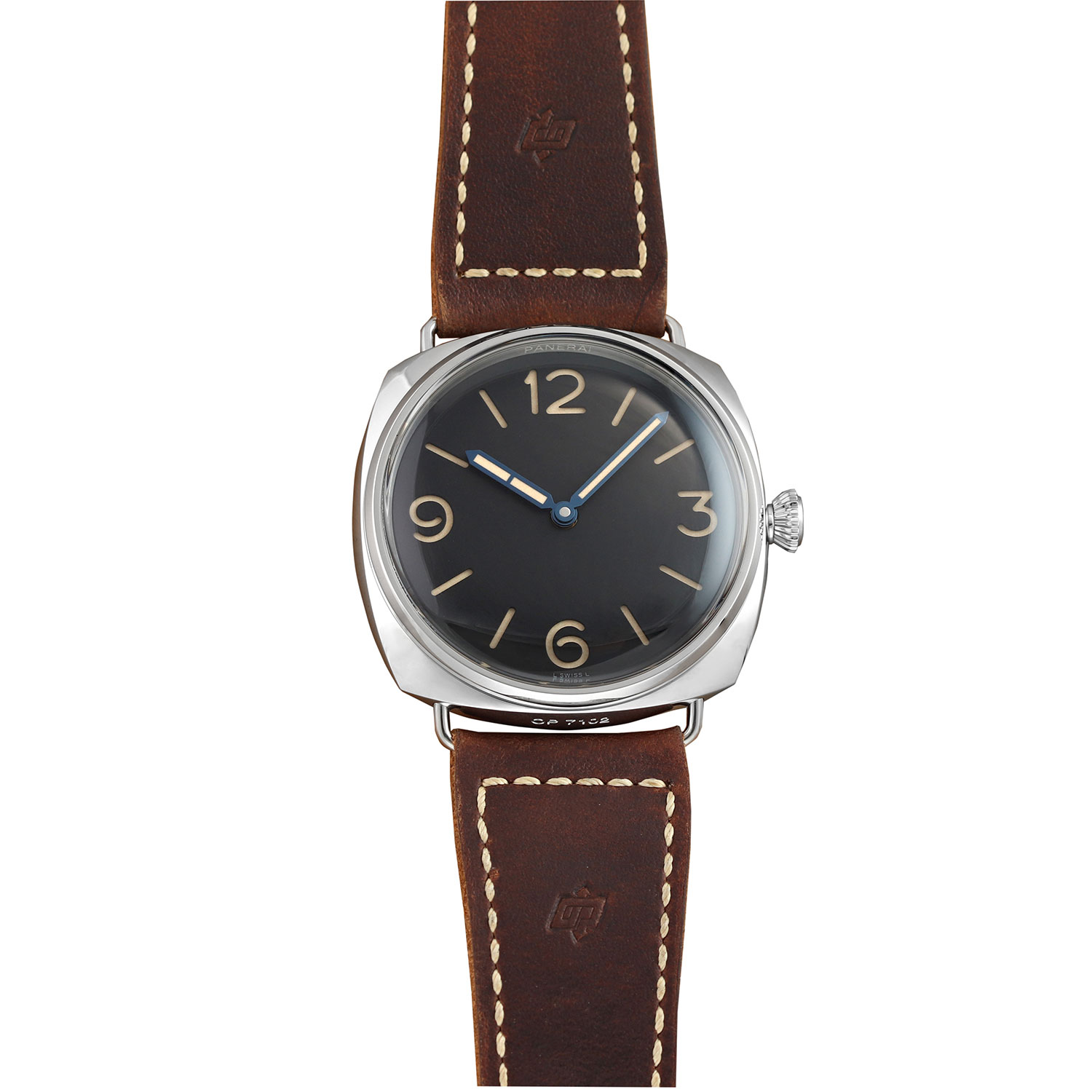 This Panerai Radiomir 3 Days Acciaio PAM00721 has a black quarter arabic dial and a leather strap. This Panerai has undergone a thorough inspection of accuracy, functionality and condition at our Panerai certified service centre to determine the level of reconditioning required to meet our strict standards. It has also been checked against our records to ensure authenticity. All our watches have a 24-month warranty for your peace of mind.